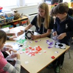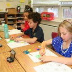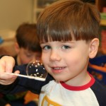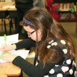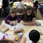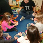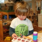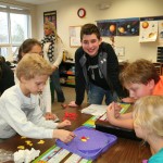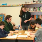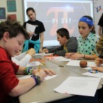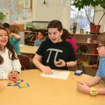 Posted by Lisa HaseltineUnquowa students, wearing circles, polka dots or pi T-shirts, celebrated Pi Day on Monday, March 14. Eighth graders Anne Marie, Dylan, Lucy and Jessica previewed the event when they spoke about the mathematical properties of pi and its importance in the world around us at assembly. For the younger students, bubbles, pattern matching and compass designs provided the circles for the day. Fifth graders created pi code bracelets, while sixth graders competed to see who could memorize more digits of pi. By measuring the radius and circumference of a variety of circular objects, seventh graders endeavored to verify the relationship “circumference divided by diameter = pi.” Eighth graders scoured the internet to discover answers to pi trivia questions.