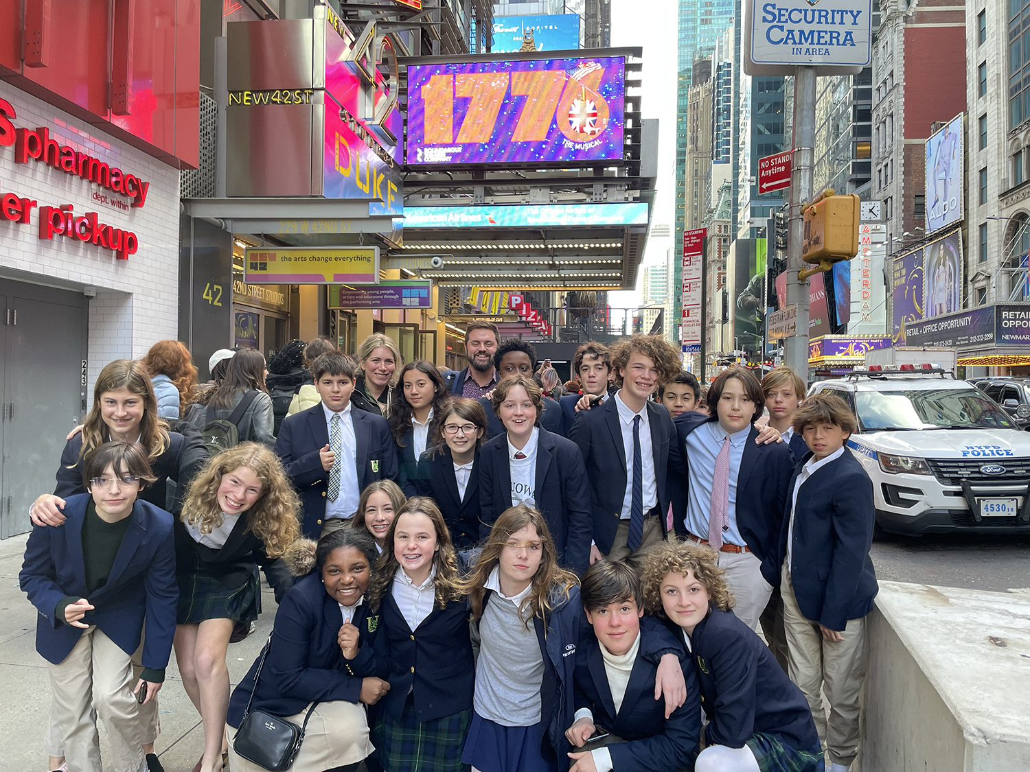 Posted by Eric Snow8th Grade Humanities at Unquowa includes an in-depth study of American History from the American Revolution to the present day. One of the essential questions we ask students from the beginning is: “What is the American Dream?” We use this question to look at the historical record and try to determine what, if anything, the Founders had to say about a unified – or perhaps an individual – American dream. We also use this question as a touchstone throughout the year as we seek more understanding about who was initially included in the American experiment, and who was (intentionally or unintentionally) marginalized or left out — what American voices still need to be heard? After learning about the Declaration of Independence, it helped students understand that the questions their teachers are asking them to think about and wrestle with are the very same questions that artists on Broadway are asking in the new 2022 revival of the Tony-award winning musical 1776 by Sherman Edwards and Peter Stone. With a revolutionary cast of women, black and indigenous people of color (BIPOC), and transgender actors, this new production highlights tensions between not only the Northern and Southern states at that First Continental Congress, but also the unspoken tensions between the America of today and the America of the late 1700s. It was a masterful performance, and students spent the next class period in school discussing their thoughts and writing up their own reviews of the show. It’s always good to be able to bring students back to Broadway, especially after the necessary hiatus during Covid. Pizza at the world-famous John’s of New York was icing on the cake!
