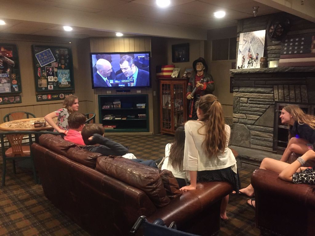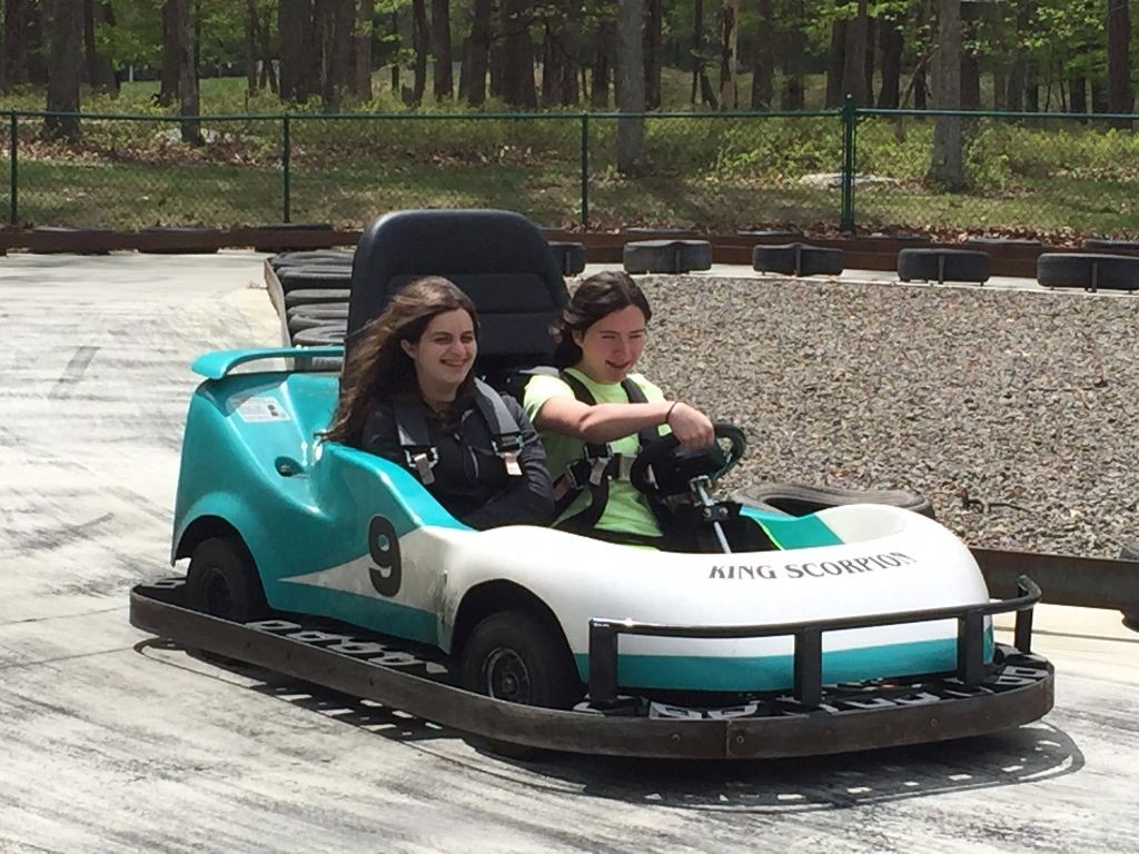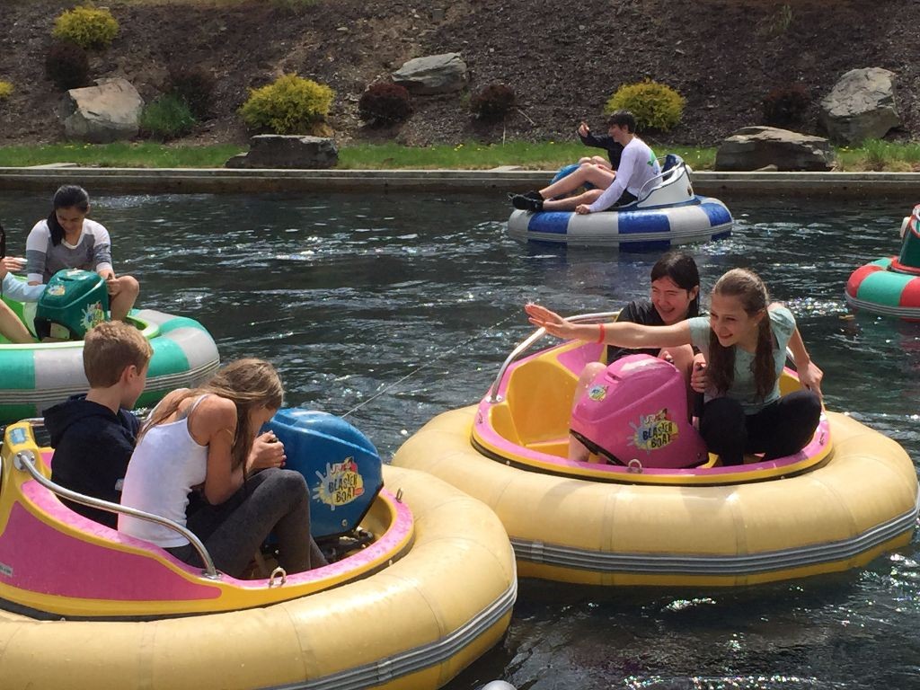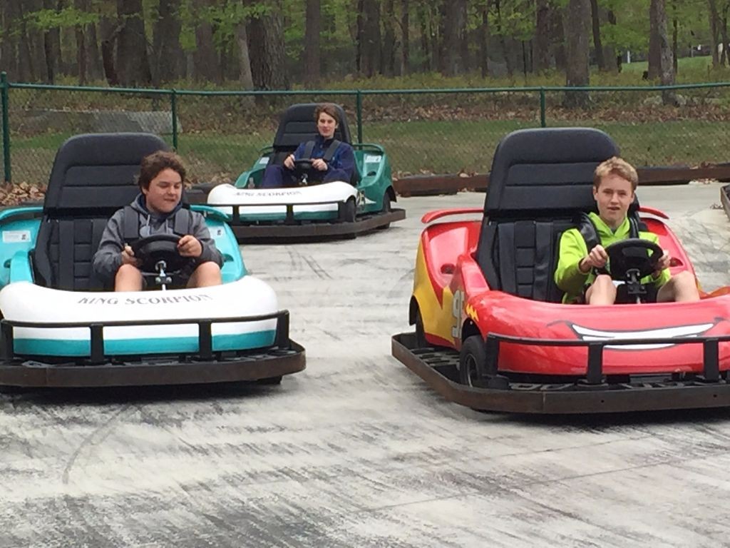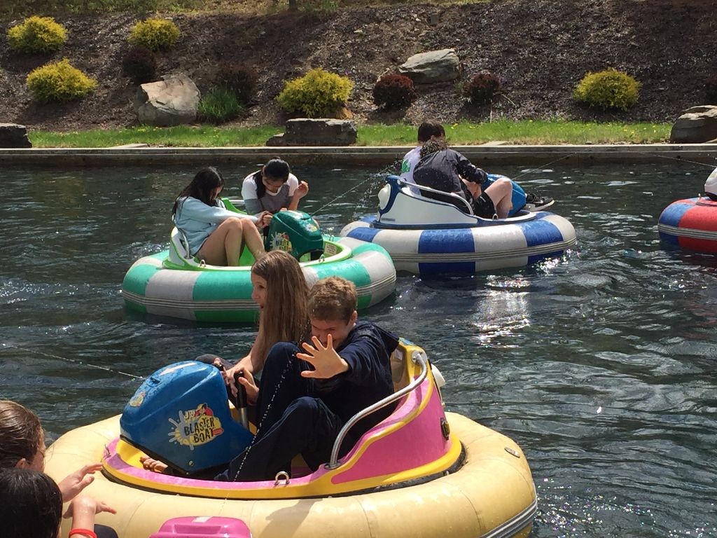 Posted by Debbie LeidleinWednesday was a bit cooler, but there were plenty of activities! After a delicious breakfast, students participated in archery, bumper boats (with water cannons, of course), bumper cars and go-carts. After a quick trip home to change into dry clothes, students returned to the go-carts and batting cages. Even the teachers got in on the fun when it came to the go-carts. We then took a break for lunch before paintball wars. Students had a great time demonstrating their expertise in the art of splatting each other with paint in order to be named the winning team. We then headed back to the houses to relax and change for our dress-up dinner. The character parade including Elmo, Winnie the Pooh, Abraham Lincoln and Queen Elsa (from Frozen), promoted the musical show for that night. Paul Revere even rode in on his horse. After dinner it was time to watch the Rangers game, ride the bumper cars or just spend time with each other. It was a fun-filled day and we look forward to warmer weather tomorrow.