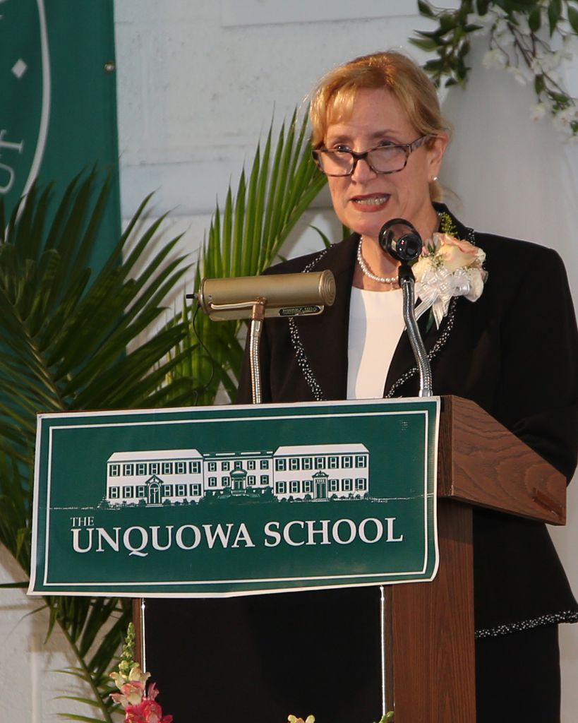 Returning to school that evening for Commencement, Unquowa’s graduating class gathered with family, friends, alumni, the Board of Governors and the faculty and staff for a final ceremony of closure and to mark the start of their transition to high school. The Rabbi Evan Schultz offered the invocation and Salutatorian Sasha Starovoitov welcomed everyone to the celebration.
