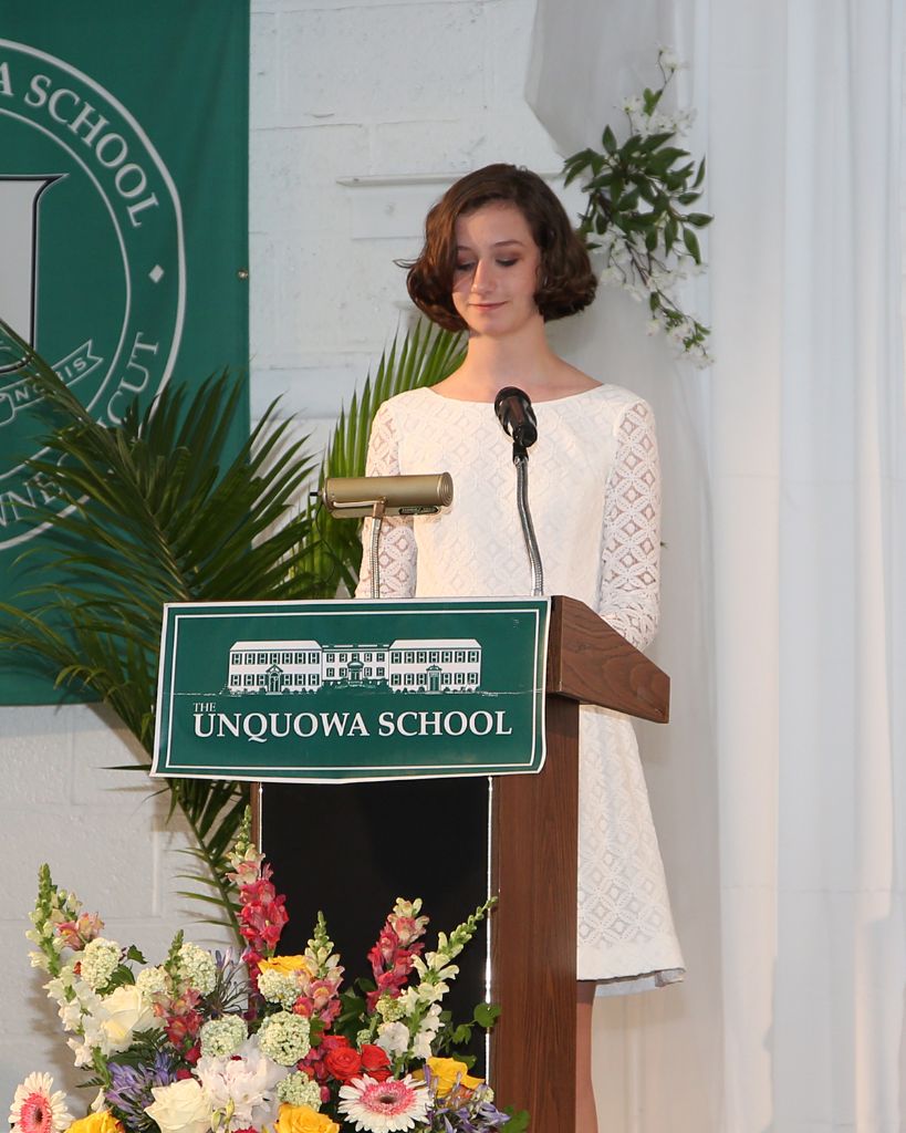 Valedictorian Conner thanked Ms. Lauer and the Unquowa faculty on behalf of his fellow graduates for their guidance and support saying “today, we, the Class of 2014, graduate not only from middle school but to the next stage of our lives. Today, as we go from middle school to high school, we must say goodbye to the middle school community we know and love and cross the road to the bigger, busier high school where we each will do bigger and better things. I know that some of us might be nervous or even scared about the next stage in life, yet I know that our teachers, families and friends have prepared us well.”