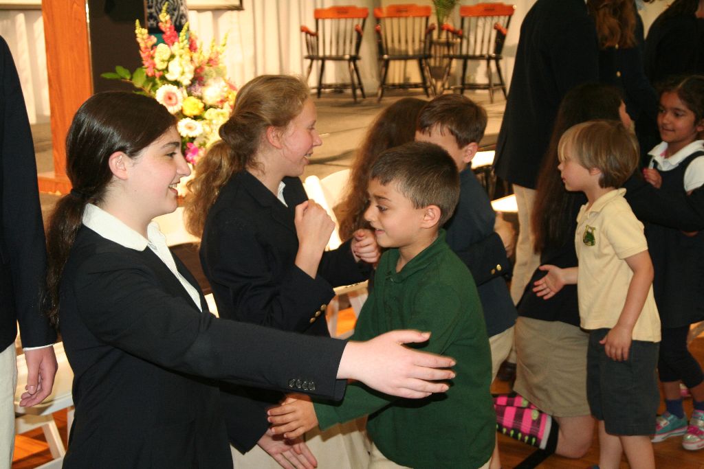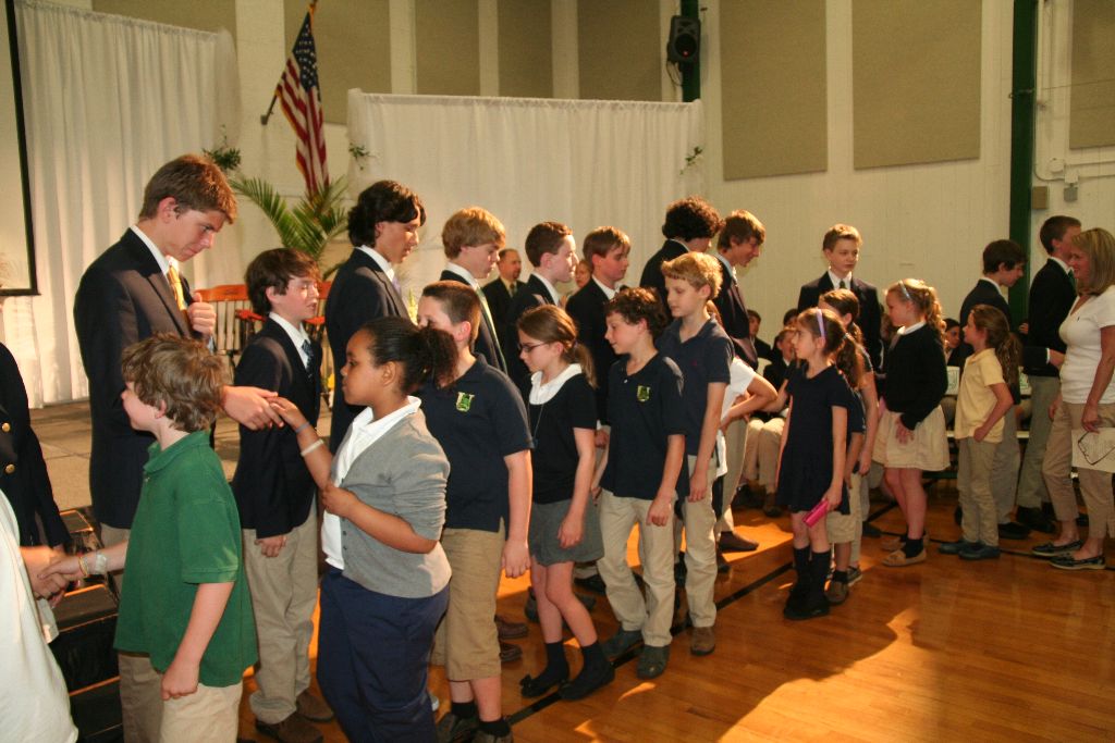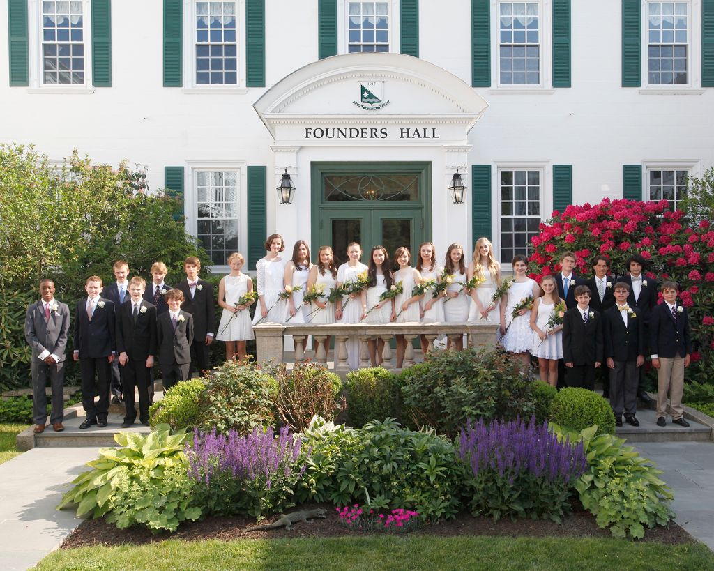 The ceremony included the announcement of several awards. Valedictorian, Conner, received the William J. Grippin Award for the highest academic average. Elysse and Alex were both given the Unquowa Award for significant growth in intellectual discipline. The Board of Governors’ Cup for outstanding school citizenship was given to Sara and the Headmaster’s Cup was awarded to Claire. The John P. Blessington Award for steadfast concern for classmates and the school was given to Elizabeth and the Robert L. Cleveland Award for a keen mind, sound body and unafraid spirit was awarded to Olivia. Eighth graders Derek and Maria were named Class Agents. The Jean Carpenter Winton Distinguished Alumni Award was given to Carolyn Gaines Ruckle ‘53 in recognition of her loyalty to our school and mission.
