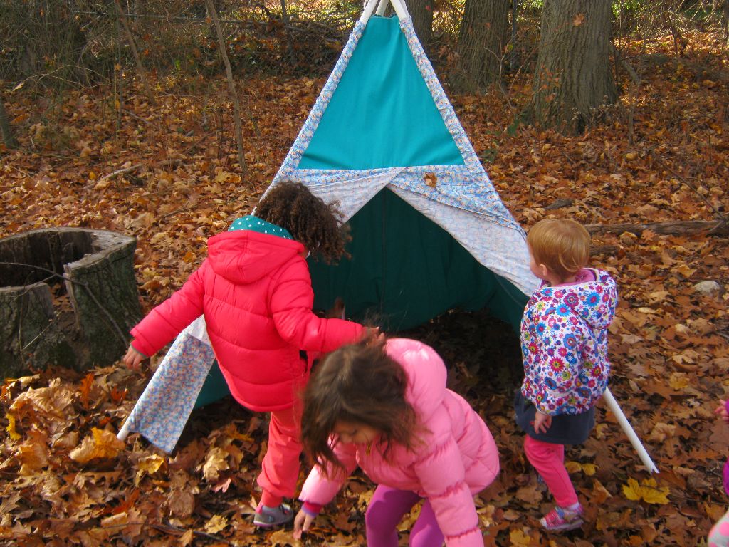 Posted by Janice ShannonWe are learning about Native Americans in class so one day last week we played and set up a tepee in the woods behind the school. While we were out there we listened to the sounds, smelled the leaves, collected firewood, jumped over logs and waited for a deer to come by. It was a little chilly but we got very warm in our tepee when we covered ourselves with animal skins (an old mink, of course). We changed our names for the next two weeks to Hopping Rabbit, Soaring Eagle, Red Deer, Walking Horse and Running Fox. We have lots more to learn about these wonderful people so keep watching our blogs…