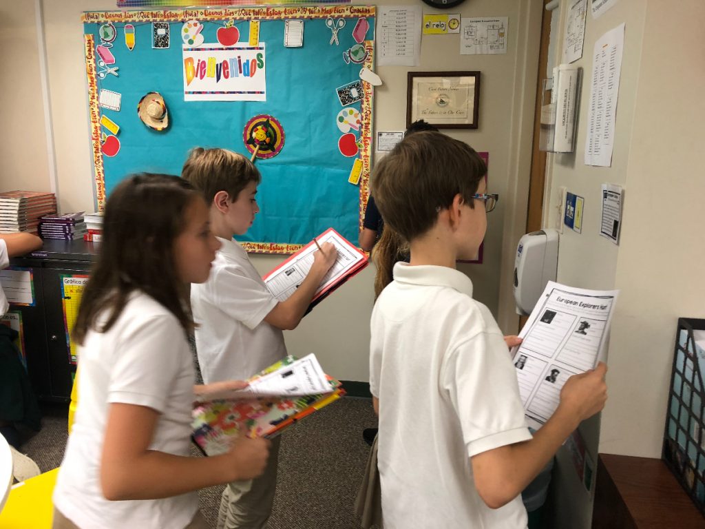 Posted by Ms. DeAngelisAs the fifth grade Spanish class learns about the conquistadors and the Age of Exploration, we thought it would be fun to do some exploration of our own! Hidden around the classroom were short biographies of famous explorers and conquistadors from 1400-1600. The fifth graders, newly charged with exploring and discovering the Clase de Español, hunted for the eight explorers and recorded key information about their lives and journeys to the New World. Though we didn’t find any gold (this time), we did learn a lot about what motivated the European explorers to cross the ocean and head into the unknown.