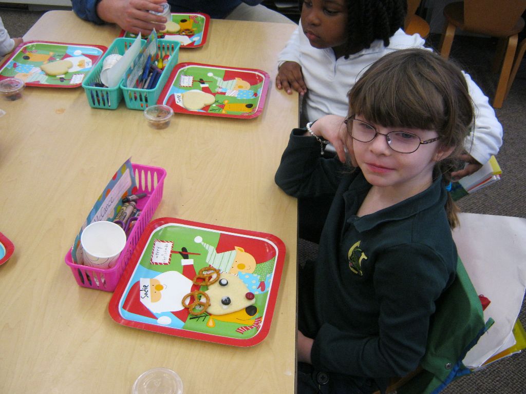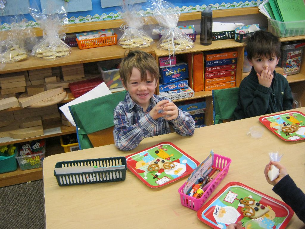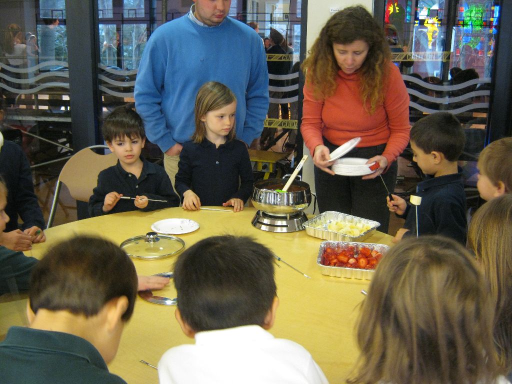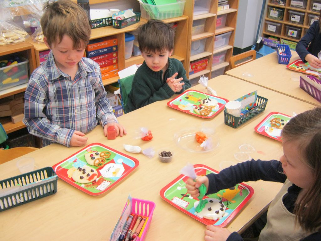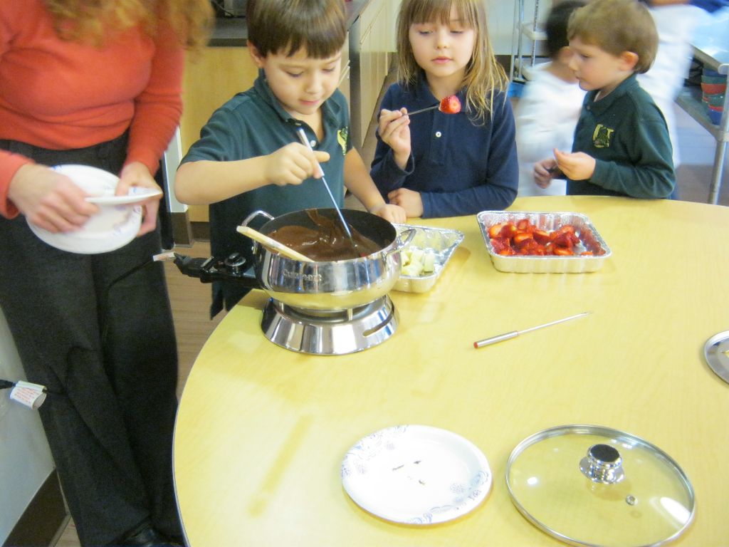 Posted by Faith BarbutoEvery year during the holiday season, the kindergarten class invites parents to come in and share their family’s holiday traditions. It’s a great way to learn about other cultures and for parents to be involved in the classroom! This year all the presentations involved food – always an important part of a holiday celebration. From a New Year’s celebration involving Swiss chalets and chocolate fondue, to latkes and the story of Hanukkah and decorating Christmas cookies, children thoroughly enjoyed all of the traditions! If you are a parent with something to share, please let us know- there are many more holidays to come!