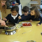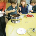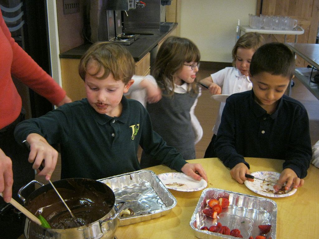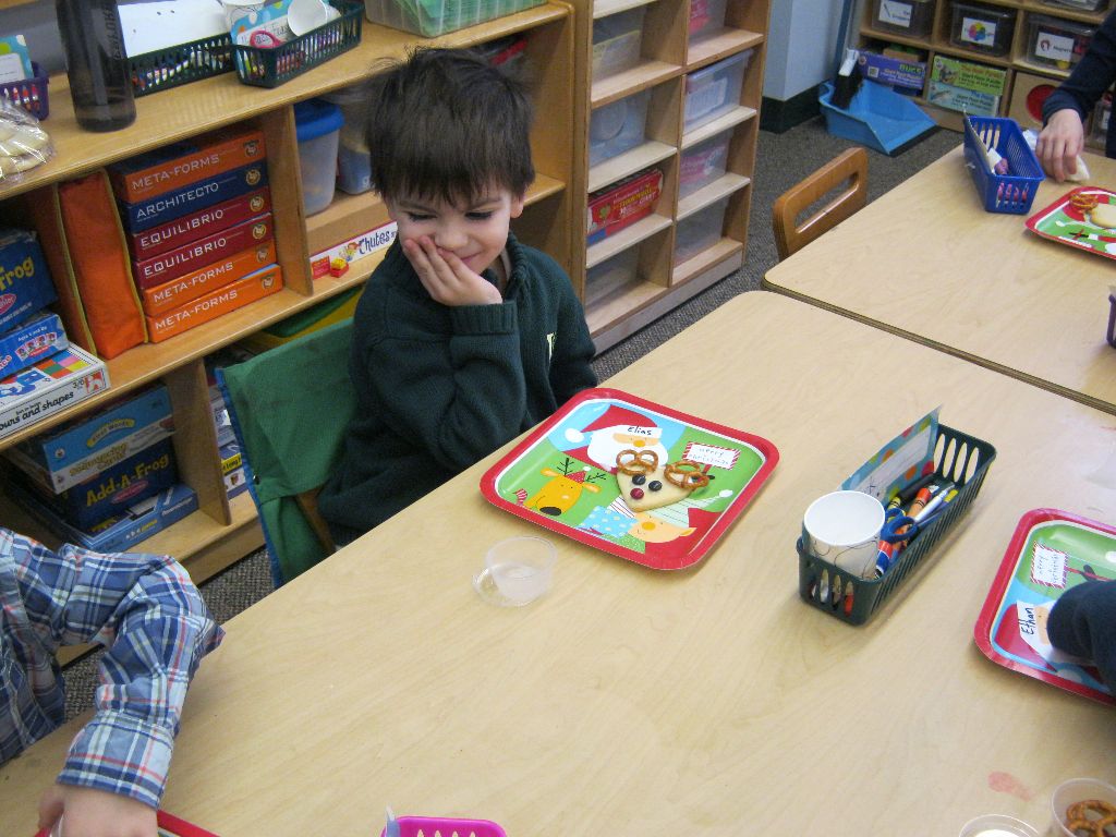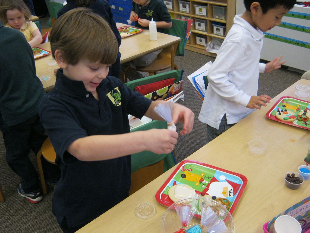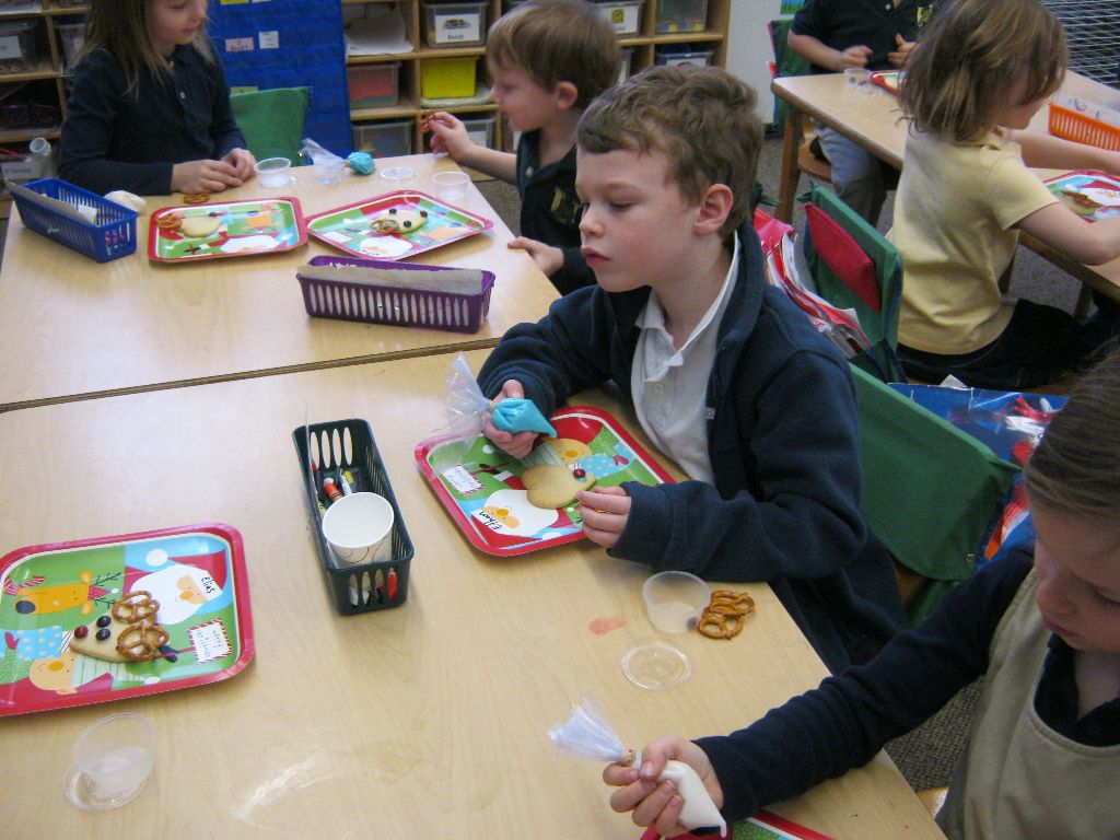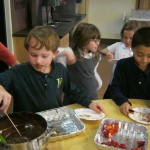 Posted by Faith BarbutoEvery year during the holiday season, the kindergarten class invites parents to come in and share their family’s holiday traditions. It’s a great way to learn about other cultures and for parents to be involved in the classroom! This year all the presentations involved food – always an important part of a holiday celebration. From a New Year’s celebration involving Swiss chalets and chocolate fondue, to latkes and the story of Hanukkah and decorating Christmas cookies, children thoroughly enjoyed all of the traditions! If you are a parent with something to share, please let us know- there are many more holidays to come!