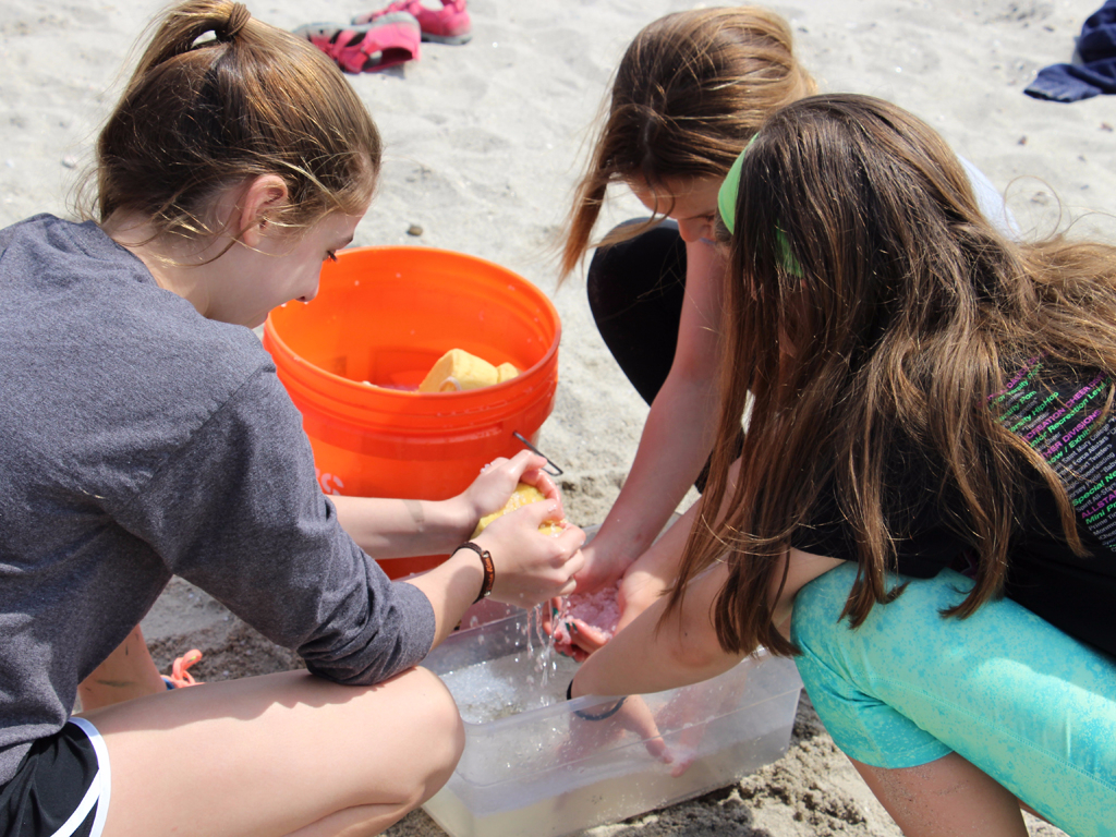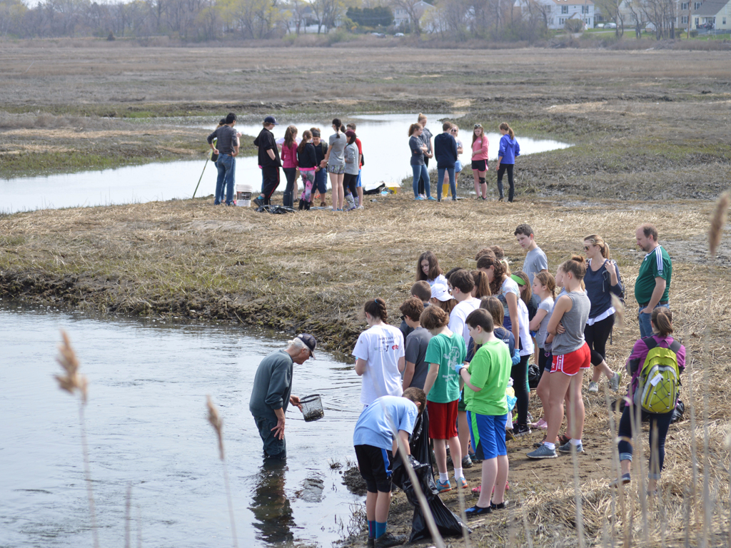 Posted by Craig KnebelThe Upper School traveled to Long Beach Park in Stratford this past Earth Day to visit the marsh and beach on either side of the parking area. Students explored our Earth Day theme of the world’s and ocean’s problems of plastic trash. “Down on the Bayou” or marsh side, students examined the marsh as an ecosystem with a member of the CT Conservation Council and got to hold Mummichogs. Students also conducted demonstrations on and experienced how the marsh acts like a filter to trap sediment and nutrients. On the beach side, teachers led explorations on the amount of plastic in the sound, which plastic items tend to sink or float, and how plastic micro pieces clog marine life. A marsh side clean up and plastic removal was also conducted by the students.
