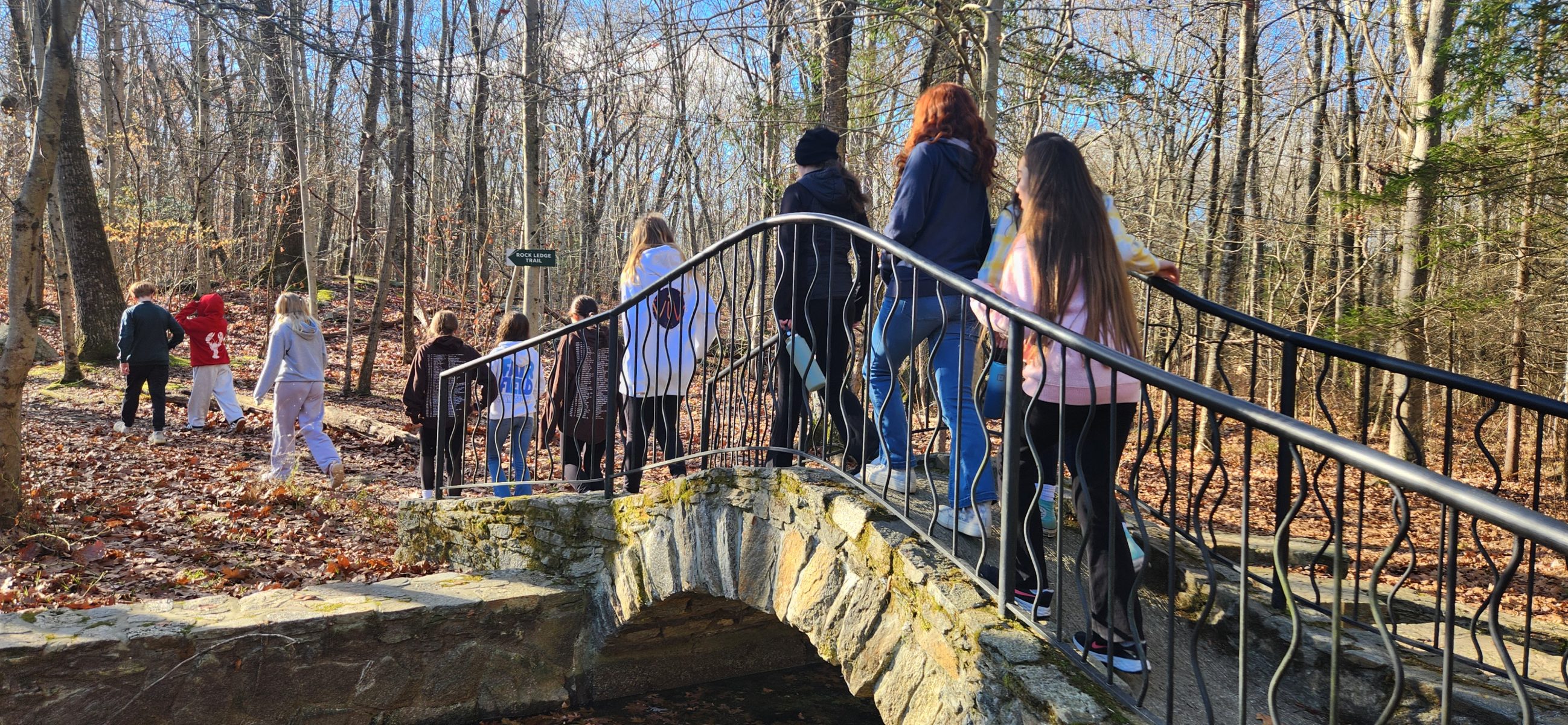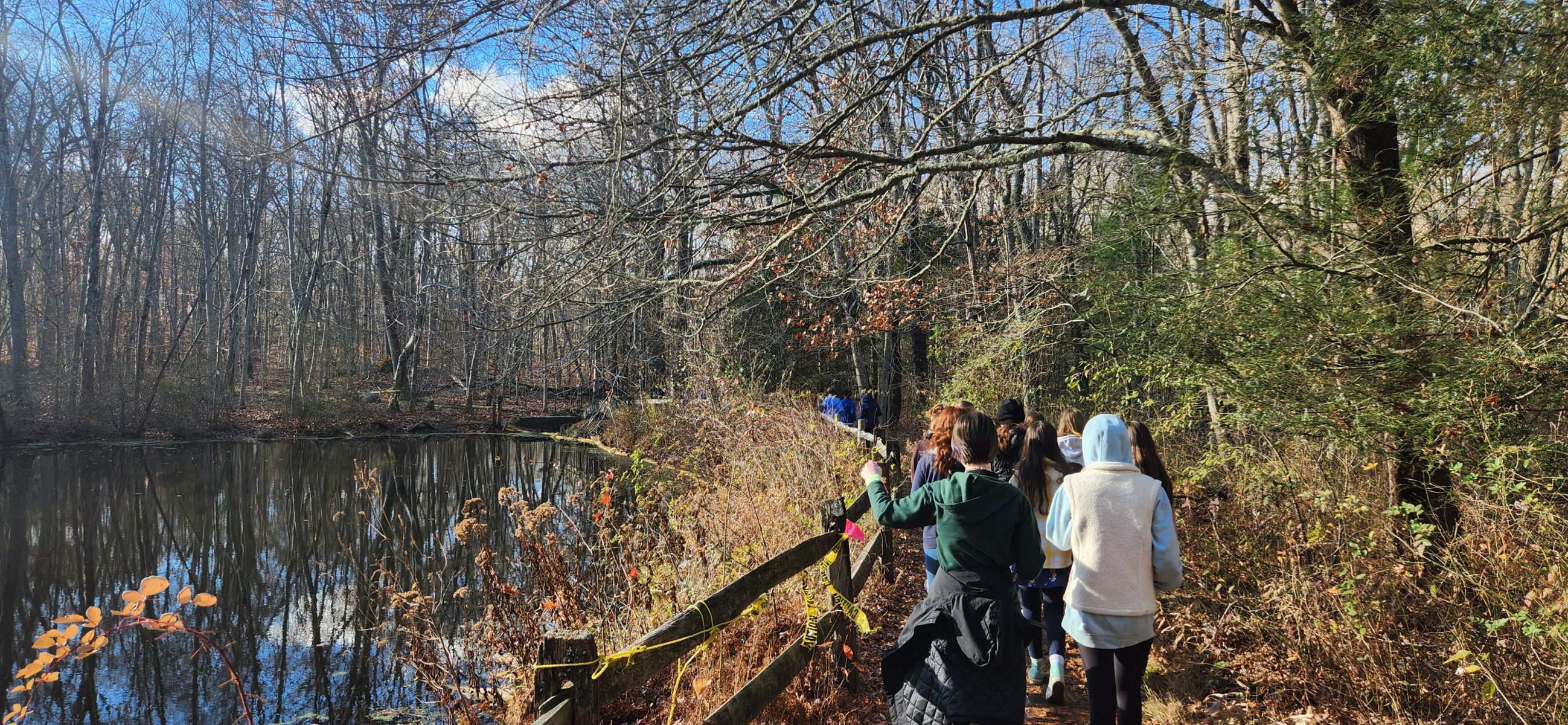 While the rest of Unquowa was finishing up their last day of ERBs, the 8th grade set out at 8:30am sharp for an adventure at the Audubon Society in Fairfield. Upon arrival, the students reviewed the sanctuaries rules and then we set out for our morning journey. Along our travels we saw a variety of birds such as the Mallard. Students also had the opportunities to explore landscapes such as the marsh lands, ponds and rolling meadows, to even rundown ruins of an old building, and a shelter that was built by past travellers! Our gators had no limits as we trekked for a total of 3.5 miles, and discussed dozens of species in only 1 hour. What an exhilarating way for our 8th graders to start their morning!