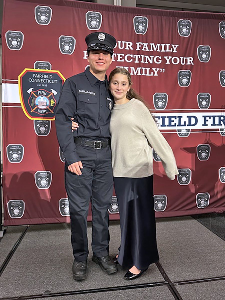 Everett Carrillo-Foote ’21, big brother to Piper Carrillo-Foote ’24, recently graduated from the Fairfield Fire Academy and is now serving as a firefighter for the Town of Fairfield at Station #1. He was the youngest recruit in this year’s class. Everett graduated from Fairfield Prep last May, and he is thrilled to be pursuing his passion right out of high school. Way to go, Everett — we are so proud of you!