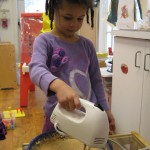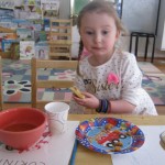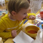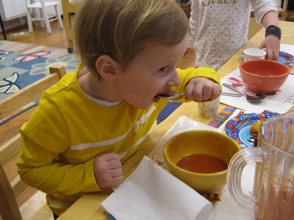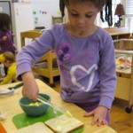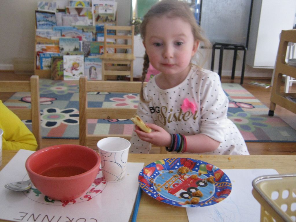 Posted by Janice ShannonDid you know that Andy Warhol ate Campbell Soup almost every day when he was a small boy? We had a morning where we made grilled cheese, a “tomato soup” cake and had some nice warm tomato soup on a cold snowy day. The children love doing things themselves and they are very capable when given the chance. We all tried on a white wig and big black glasses and laughed at each other when we saw the pictures. The children cut out 100 cans of Campbell soup pictures and hung them on a wall just like Warhol did.