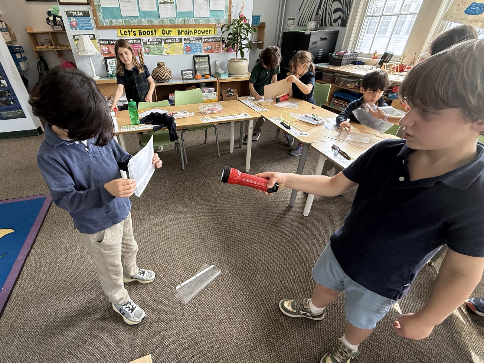 Our first graders had a wonderful time exploring how light travels through different materials and how it can create amazing colors and patterns!