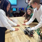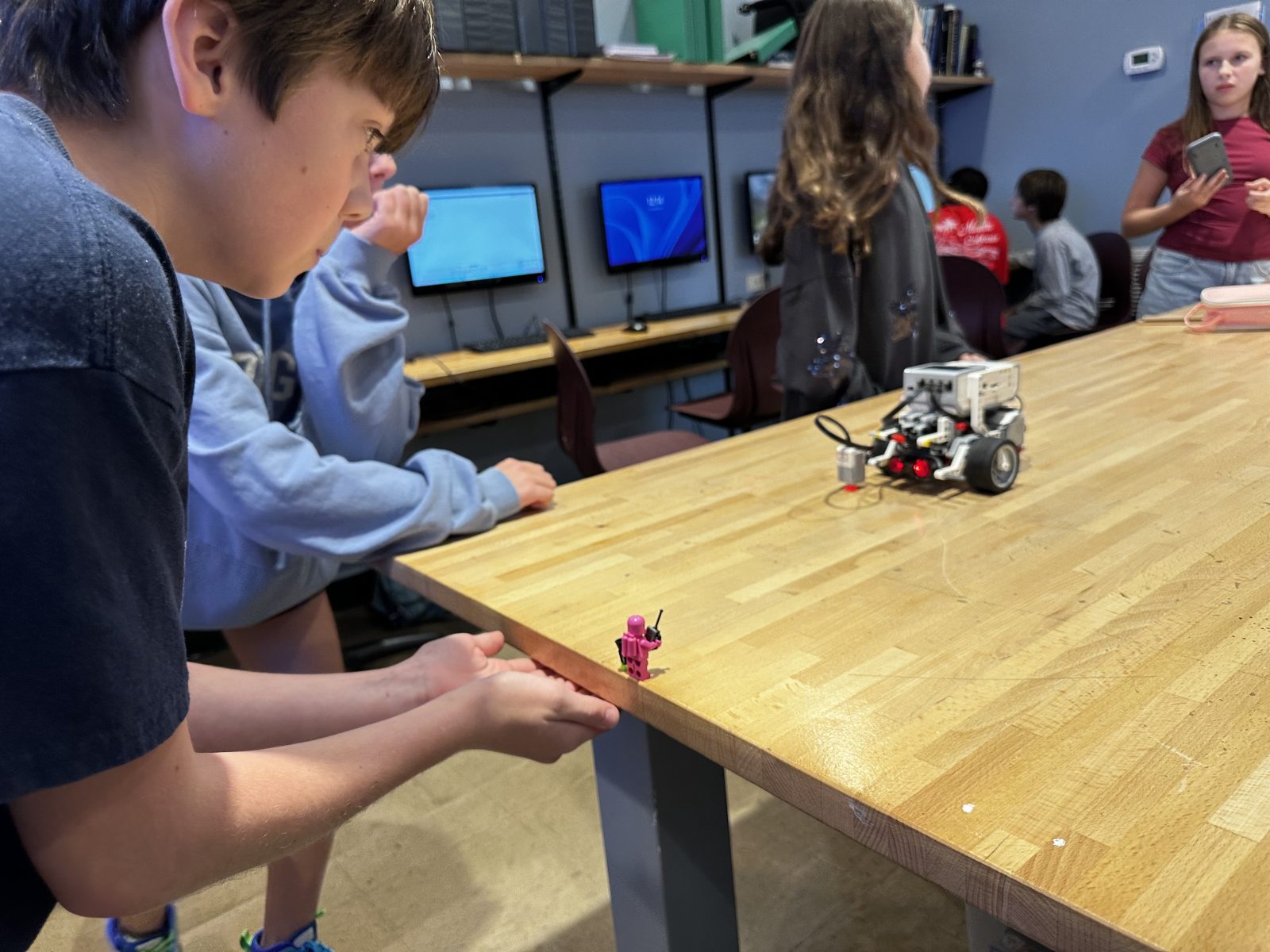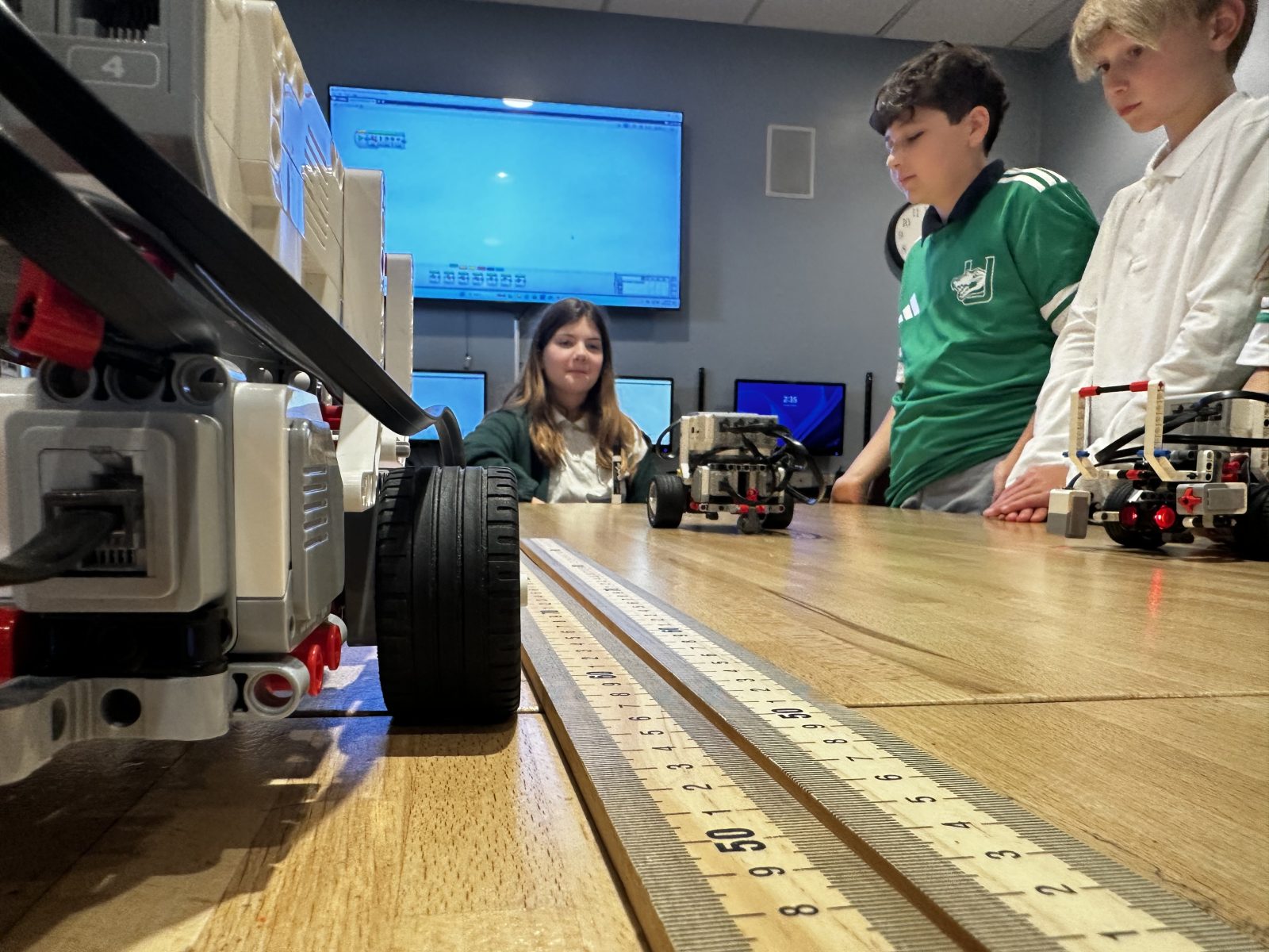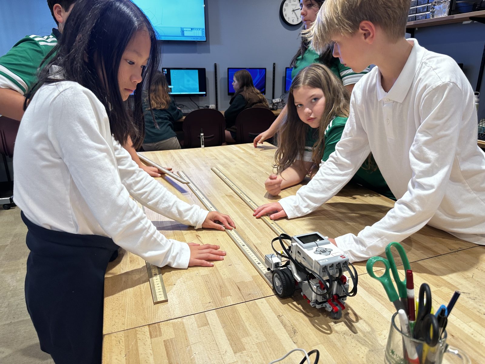 Sixth-grade robotics students have officially launched their unit with a challenging precision test: programming their robots to drive as close to the edge of the table as possible without sending their object tumbling! This initial trial showed some serious programming chops, with one standout group achieving an incredibly precise distance of just 1 mm from the drop. This excellent start is just the beginning; as they move forward, students will build on these skills, ultimately working toward the exciting goal of mastering autonomous robot programming.