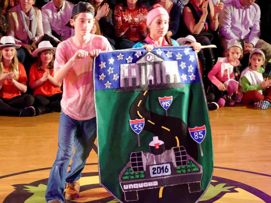 Posted by Megan KirkThis year’s Winterfest was another smashing success! It was “totally tubular man!” Every year the students at Unquowa come together to create this fantastic show that is full of traditions as well as a new story line each year. This year the students traveled all over time in the Delorian to help bring the traditions of Winterfest to the year 1985. I am extremely proud of our community here at the Unquowa School for working as hard as they did to make the show a success! Each and every student did an amazing job in their role in the show working as a team both onstage and backstage!