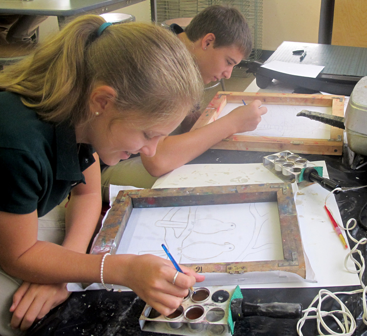 Posted by Lloyd MitchellAmong the many art forms that Bali is famous for, perhaps one of the most interesting is batik. Batik techniques have been practiced in Indonesia for over a thousand years, and today it is not only a way to decorate fabric for clothing and sarongs, but also a legitimate artistic medium. Originally the only colors used were indigo, brown, and white, which represented the major Hindu deities. The color palette has since expanded to include a vibrant rainbow of hues. Batik artists apply hot melted wax to a cloth to protect the fibers from colored dyes. The artist alternates between wax and dye until he has layered the cloth with all of his colors and patterns. The fabric is then dipped in a chemical and hot water bath to remove all traces of the wax and reveal the design. The eighth graders have been experimenting with batik techniques in class. We looked at many traditional Balinese paintings and fabric patterns for inspiration. The students are concurrently working on an actual batik on fabric and also a pattern study on paper. Images of the finished projects will be posted when they are complete!