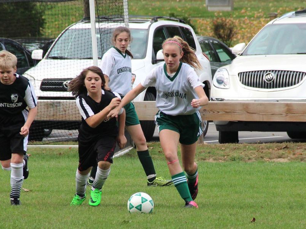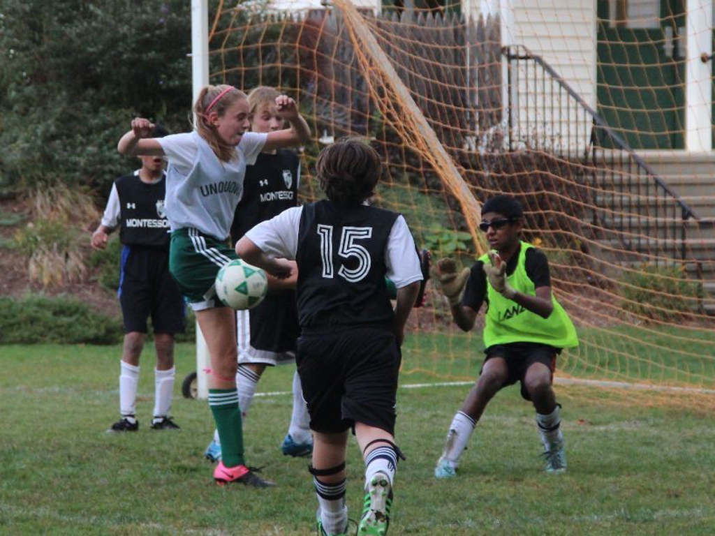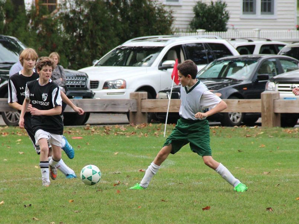 Our most recent home game against Montessori was one of the best played games of the season for the Boys’ White. The team managed to jump out to an early 1-0 lead on a great pass to our strikers. Montessori managed to even the score at 1-1 on a perfectly placed shot over seventh grade keeper, Will. From here, the squad picked up the pace of the game tallying 4 goals to take a 5-1 victory over Montessori. The highlight of the game came on a perfectly placed cross by seventh grader, Lisi that found the foot of sixth grader, Max who was in perfect position to finish the play. Congrats to the team for the victory and a special thanks to the Girls’ White squad who has lent their support filling in when we needed them in these first three games!