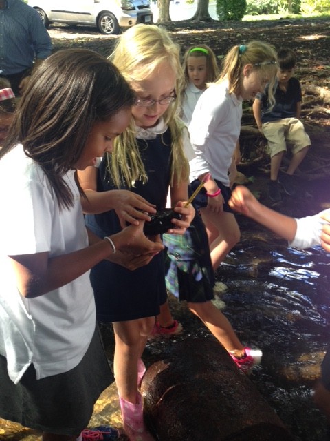Posted by Carlene GordonFourth graders took advantage of the warm weather by doing an in depth brook observation. Students walked right into the warm brook water to search for life forms and examine the condition of the banks. As students carefully picked up and examined submerged rocks they were soon heard calling out, “I found a snail!” or “Are these eggs?” Meanwhile other students used nets to catch aquatic insects and even a couple of fish. Students were then careful to put everything back the way they found it to leave as little trace of our visit as possible. Our lesson was concluded with a mindful moment of silence sitting on the banks listening to the sounds of the brook.