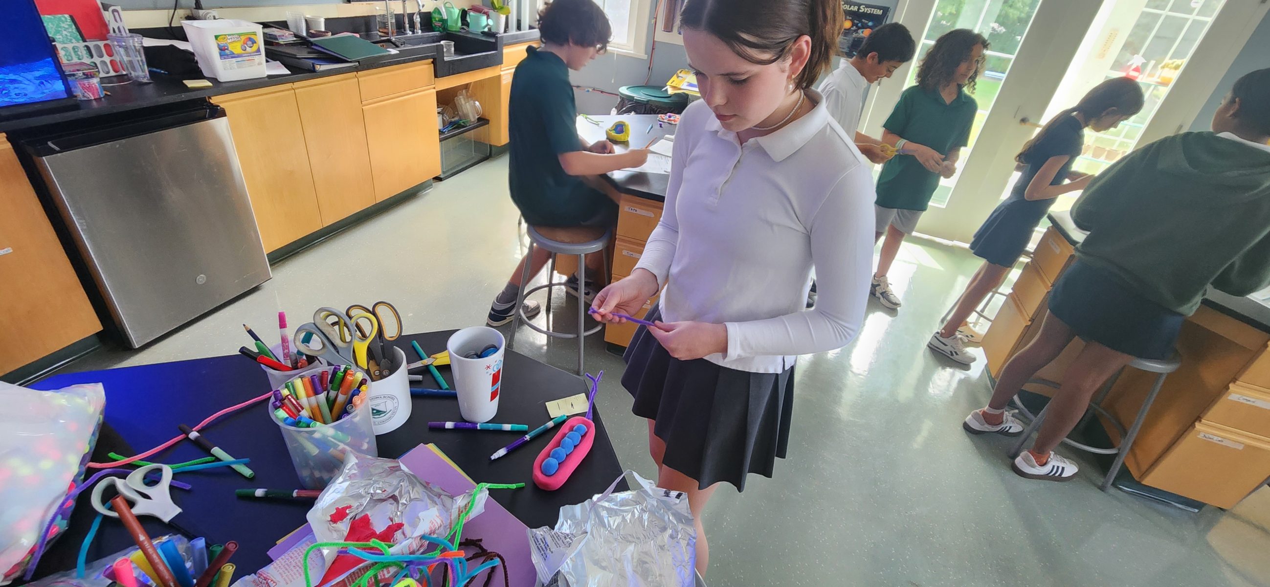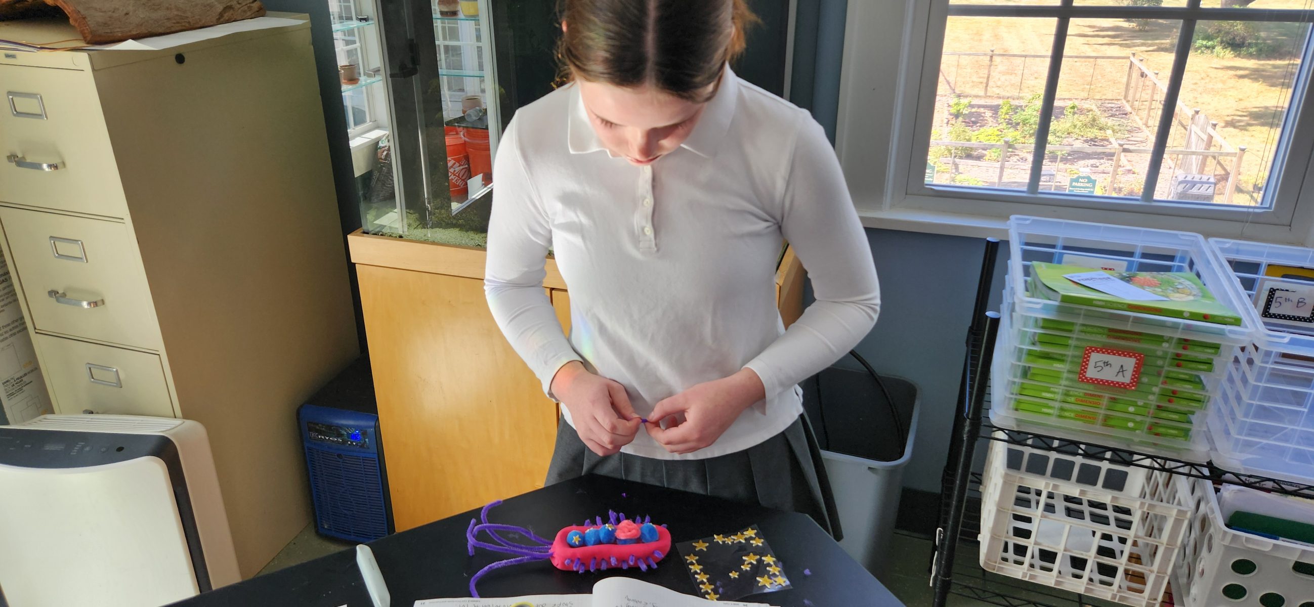 In order for the 7th grade to gain a better understanding of the world around them we first took a look into the microscopic world of cells! Our young scholars started by learning about the different types; either they can be eukaryotic, like animal cells or plant cells, or they can be prokaryotic, like a paramecium. After the students learned about these two main categories of cells, they then began to learn about all of their cell parts which we refer to as organelles. A few examples of organelles include; a nucleus, a mitochondria, endoplasmic reticulum and more! Not only did our students learn what these organelles look like but they learned what their roles are within the cells and how they help the organism function on a daily basis. Once students started to have a better understanding of cells and their parts, they were able to construct their very own cell models! Students were able to choose between an animal cell, a plant cell or a prokaryotic cell. In the end, students had a blast making these models and they definitely have a more in-depth understanding of how all living this are made of cells and how important they are for life!