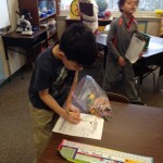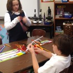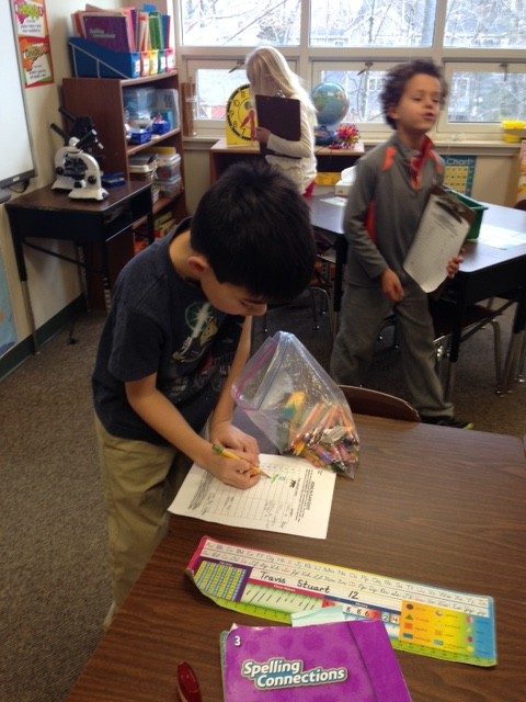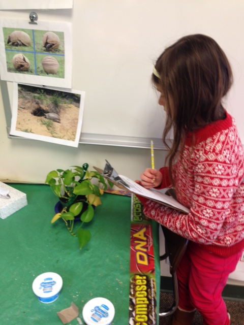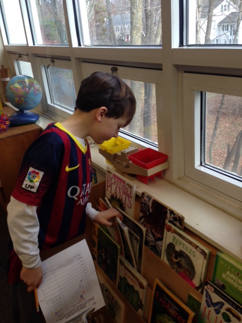 Posted by Carlene GordonIn a study of animal behaviors, third graders recently investigated camouflage. To survive in the wild, sometimes animals use their environment to blend in and go unseen by would-be predators. After examining many real life examples of camouflage by color, texture and movement, our third graders created their own creatures with the classroom as the “habitat.” After paying close attention to color, shape and texture of potential hiding places, these creatures were placed around the room for our classmates to find. While locating a good hiding place the only caveat was that the creatures had to be left out in open view. An easy task to find them, thought many. However, as the search began, students discovered how effective camouflage can be to blend into one’s environment.