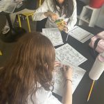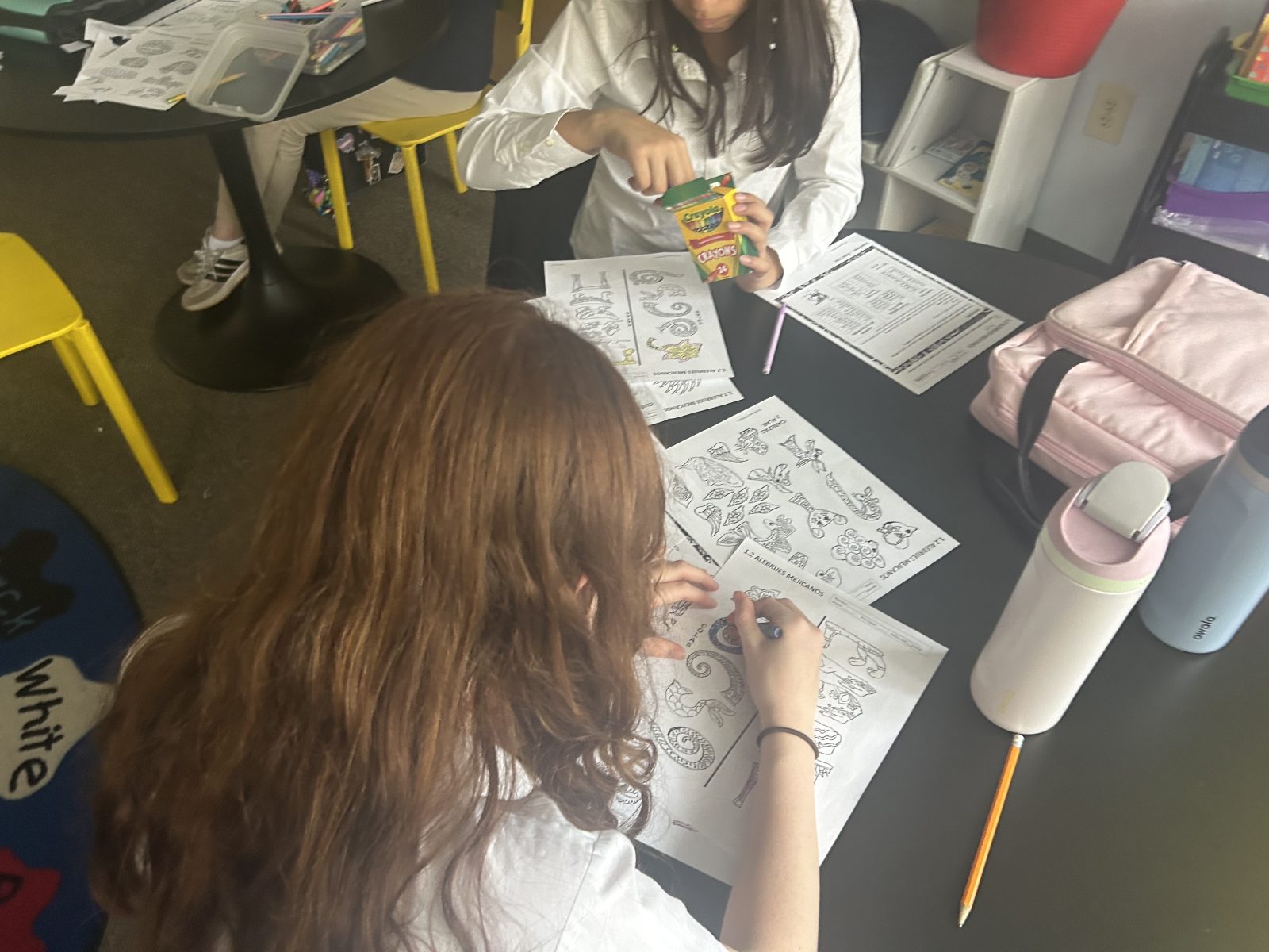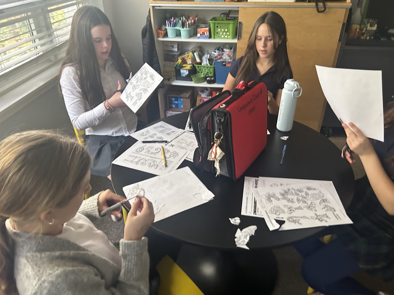 As part of their learning, students created their own alebrijes — fantastical spirit animals that represent the guides and protectors of souls in the afterlife. Using bright colors, imagination, and symbolism, students brought their creations to life while reflecting on the artistry and spirituality behind this cultural practice.