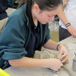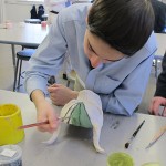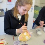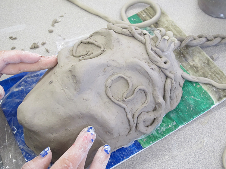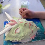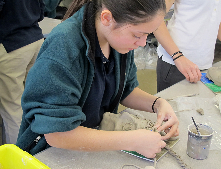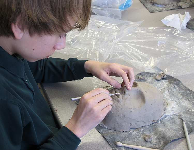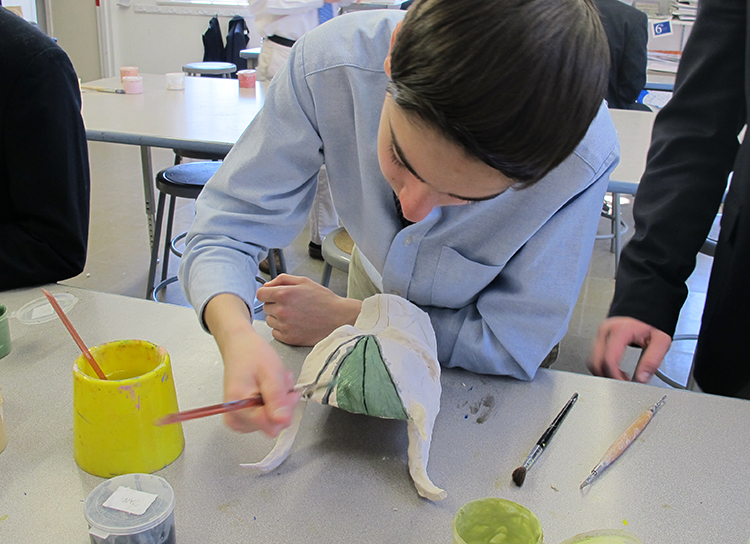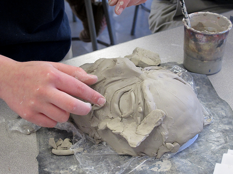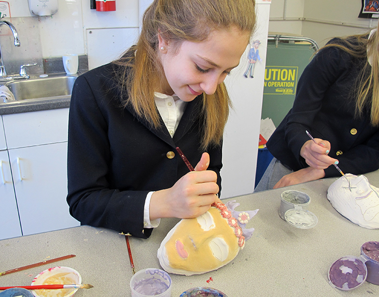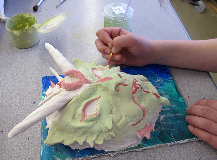 Posted by Krissy PondenThe eighth grade has been working on sculpting clay masks with unusual and exciting results. Starting with a plastic facial form, they first applied a layer of clay to create a basic template. After that they were allowed to let their creativity run wild and transform their mask into any fantastical creature they could imagine. This project required them to utilize their previously learned ceramic skills including advanced handbuilding techniques. Forest spirits, creatures from the blue lagoon and even an angel/devil emerged from the minds of the students. The masks were fired and then painted and finally glazed to bring out their true colors. They will be on display at our all school art show in May!