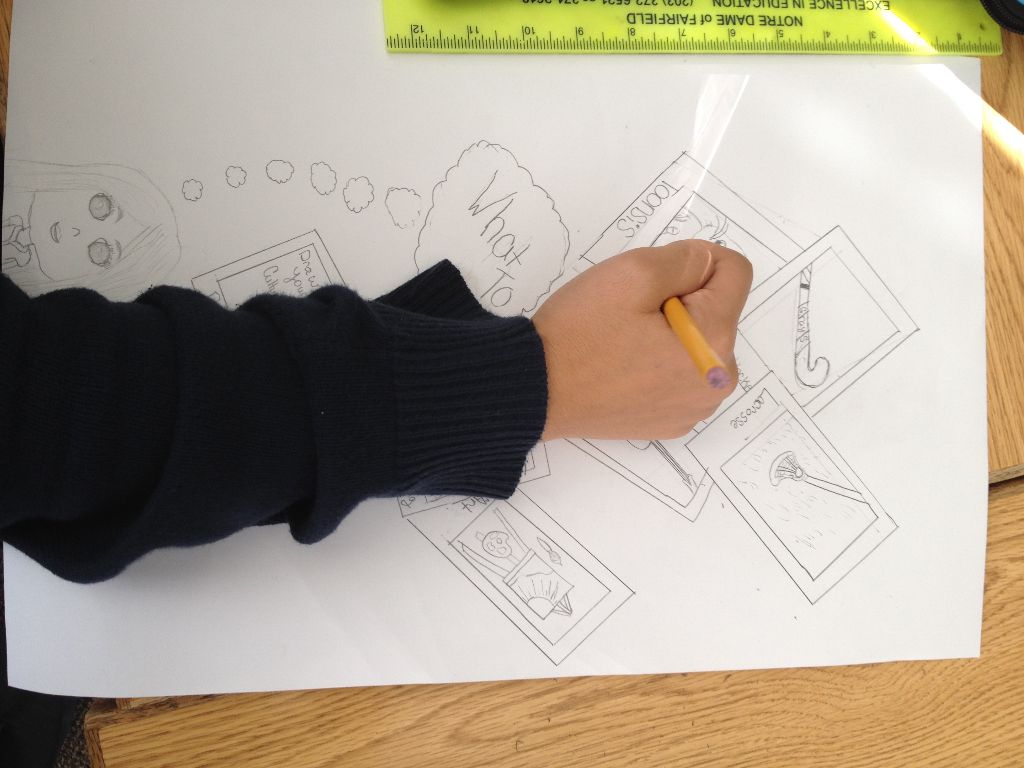 Posted by Debbie LeidleinA new season of the Artlink program is upon us. During the month of November the seventh grade students have created drawings and paintings which depict an element of their culture that they would like to share with students in our partner schools. This year’s theme is entitled “Picture the Moment” and asked students, in an age of selfies, to leave the technology behind and depict themselves engaged in a specific moment in their lives to share. We will be sending our artwork to our partner schools in Ryazan, Russia and Chennai, India and, in return, they will be sending us similar pictures of the moment. We will be able to study each other’s pictures and then will have the opportunity to video chat in the spring. This experience is always an eye-opener for students that, even though we have some differences, our cultures really are similar.