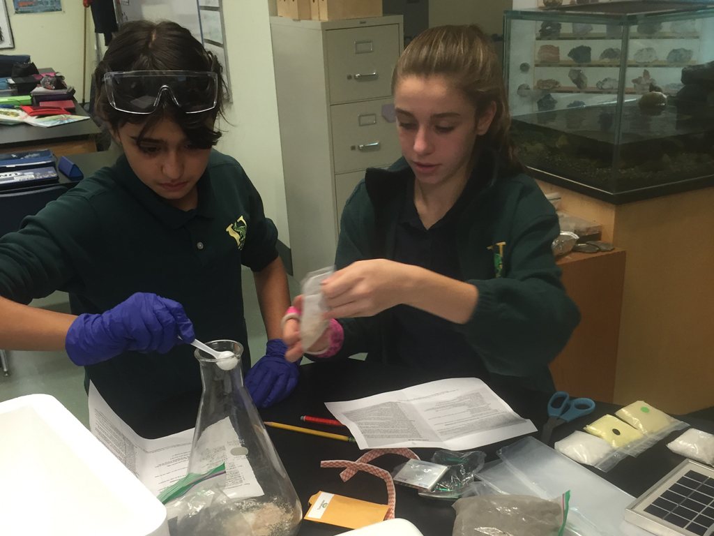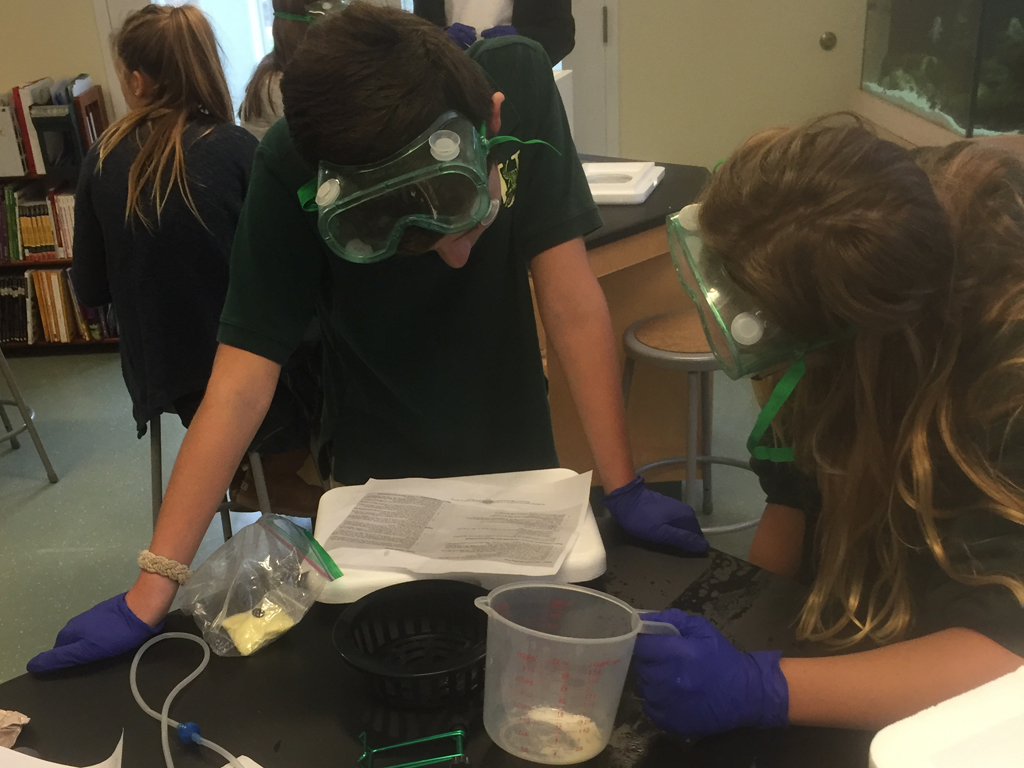 Posted by Craig KnebelThe seventh grade is studying energy flow in an ecosystem. They have learned that producers (plants) form the basis of all food webs using energy from the sun. They have also studied the idea that plants need things in cycles like Carbon and Nitrogen. To test whether or not these elements have to come from soil they set up solar polar pumps to supply liquid nutrients to tomato seedlings. They opened the hydroponic kits and had to assemble them with very little direction from their teacher.