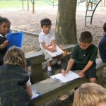 Posted by Faith BarbutoThe kindergarten scientists took to the outdoor classroom to hone their listening skills. Before we left we made some predictions of things we might hear outside on the playground. We went out and listened intently, drawing pictures of things we were able to hear. Next, I asked the students to close their eyes and just focus on listening. After a few moments they drew what they were able to observe using just their sense of hearing. Most of us agreed that it is easier to hear with your eyes closed!
