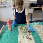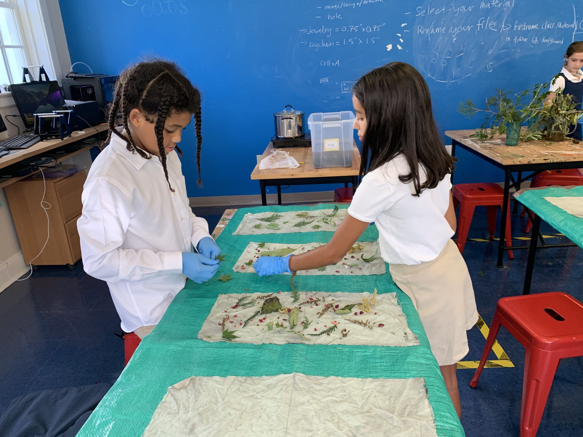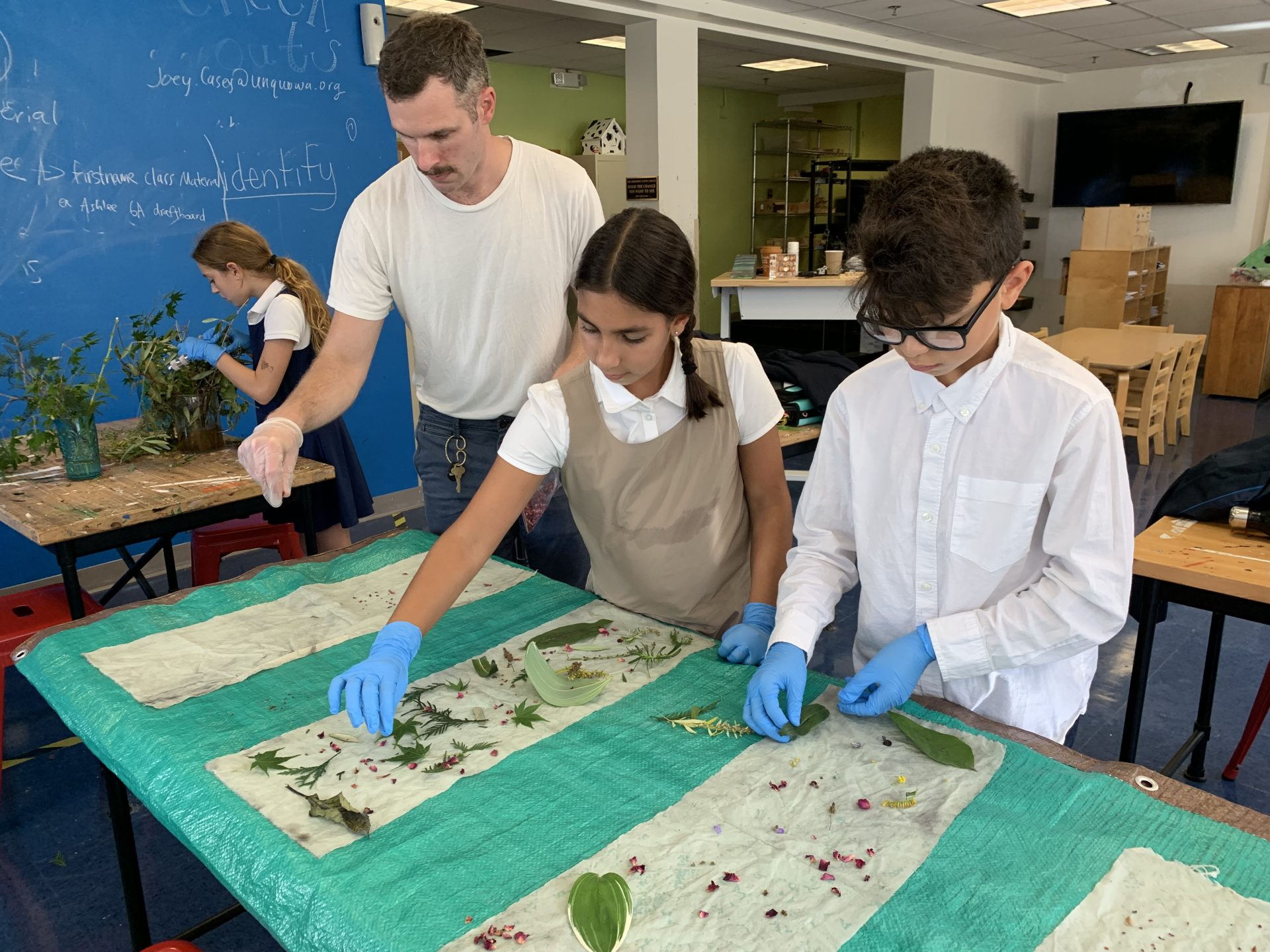 Posted by Sarah RaggioIn solidarity with the Umpqua Community we are learning about in Indian No More, the Grade 5 students took a break from reading to create some art, using plants and leaves we found in nature. The Native American community in our book demonstrated their love and respect for the natural world they lived in, which inspired us to stop and appreciate the beauty around us. The students created designs on muslin fabric with the plant material and learned about bundle dyeing with an iron mordant. This Master Class was taught by our very own Makerspace teacher, Mr Casey, who has a lot of experience in dyeing. A special thanks to Mr. Casey for the fun collaboration!