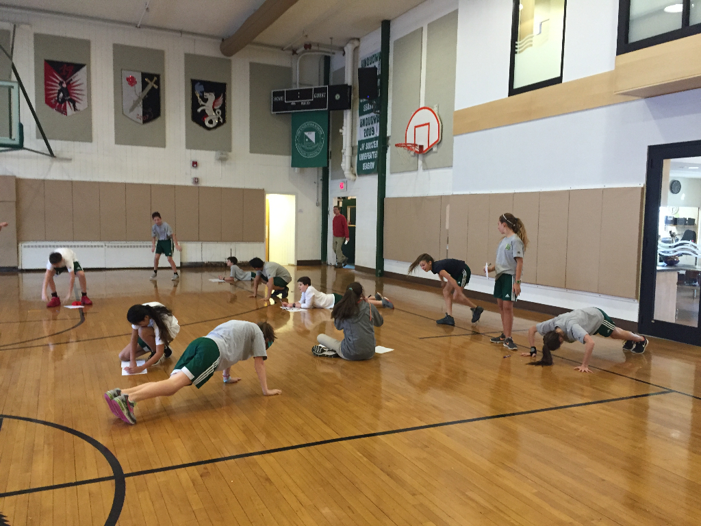 Posted by Sarah PollexThe seventh grade science class wrapped up their study of cellular respiration with some practical application in PE class. Students were challenged to experience lactic acid fermentation first hand by performing as many burpees as fast as they could in two minutes and by completing a 90 degree wall sit for as long as possible. As they began each exercise, they felt great: their muscles drew upon stored-up energy to contract. However, once the stores were spent, continuing to exercise at a maximal level, no matter how quickly they breathed, their muscle cells used the oxygen faster than it could be replaced. Consequently, their muscles broke down glucose without using oxygen to get energy, producing lactic acid. Students described feeling “horrible,” “miserable,” “wobbly” and “achy.” Yet, warming down gave their cells more oxygen, broke down the lactic acid, and the pain went away!