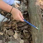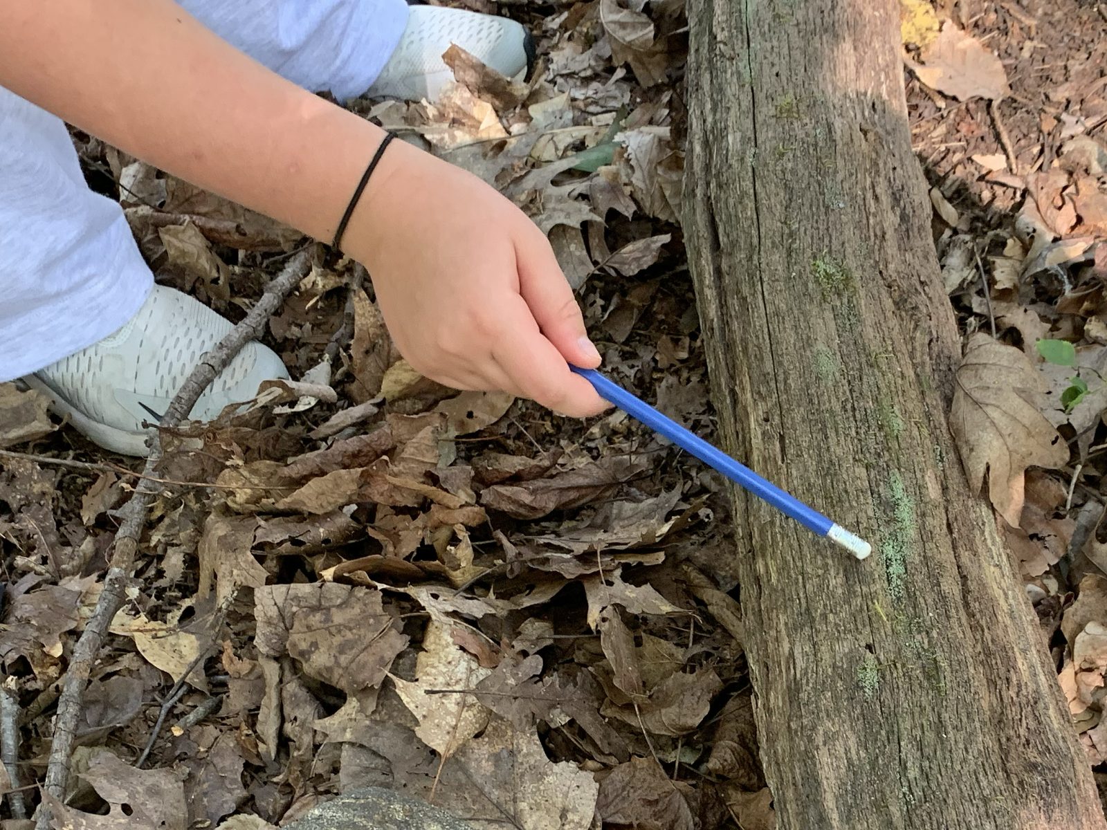 Next a keen eyed student saw the exoskeleton of a Cicada on the Blue Spruce tree outside of the corral. It was incredibly camouflaged and not easy to distinguish from the similarly colored bark. Well done detective.