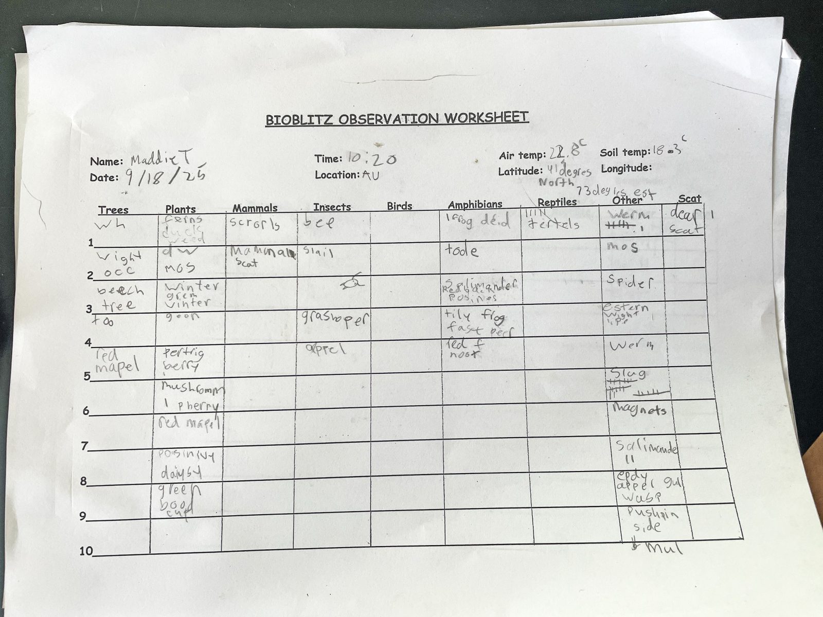The 5th graders went to the Connecticut Audubon society on Thursday, September 18, to participate in their own bioblitz. We ventured into the forest of the 250 acre sanctuary equipped with clipboards, data sheets, field guides and enthusiasm.