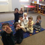 Posted by Alyson CahillPreK-4 students are always using their bodies and imaginations to tell stories, some of which happen to rhyme! This past week we learned a simple story about a turtle. We used our hands to create the swimming turtle and paid attention to the poem’s rhyming and rhythmic patterns. By clapping our hands and making a “snap” with our fingers, the students were able to pretend to snap at a flying mosquito, a minnow in the water and even our own noses! We will learn a few more poems to act out before the school year is over!
