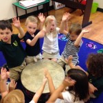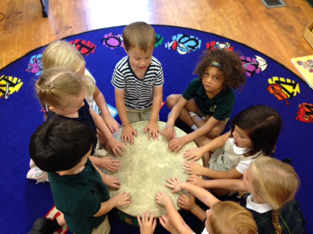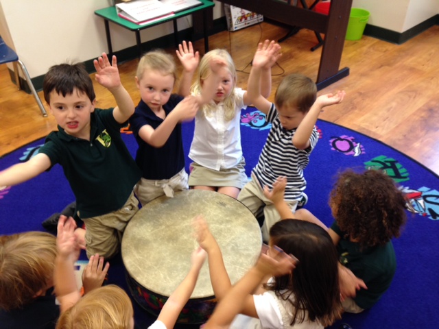 Posted by Megan KirkPreK-4 had a wonderful first class in music! First we learned our “hello” song. We then learned how to “play” our names on the big classroom drum! We also made a “Thunder Storm” using the drum to create rain, wind, and of course thunder! Students then learned the rhyme “Chop Chop” which was our introduction to keeping a steady beat. Students “chopped” many different foods to make a very creative classroom soup!