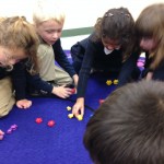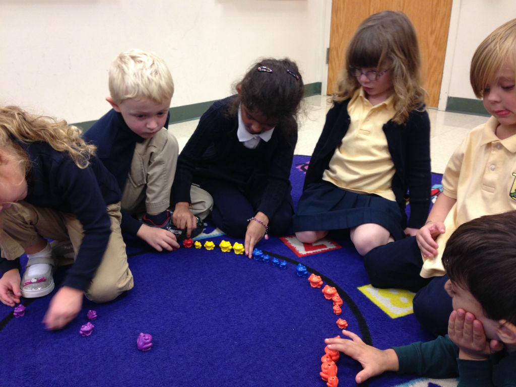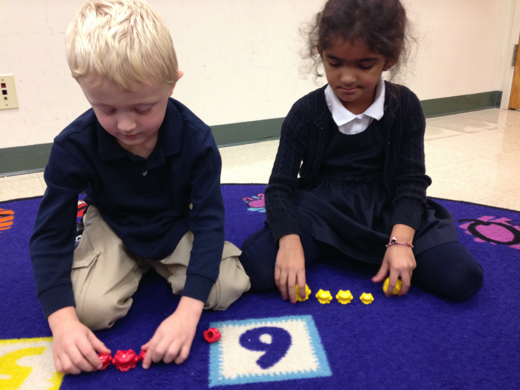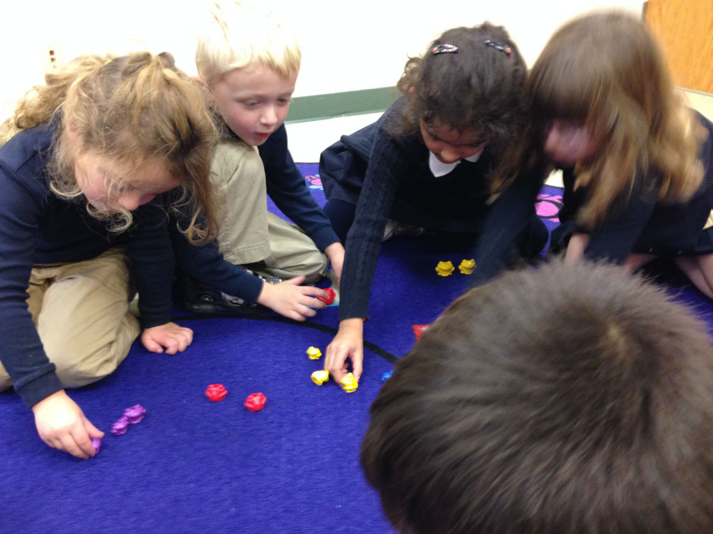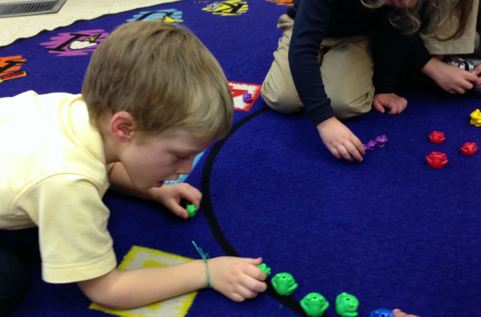 Using our song “Five Happy Frogs,” along with some colorful little frogs to act out the song, students had a wonderful time working on their subtraction skills in music class!