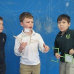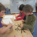 In first grade this turned into a collaborative process with two small group projects and many students inspiring one another to create similar pieces of work. When we were finished, I thought having a final presentation to the class would be a way to respect the students’ collaboration and give them a chance to continue their cross-inspiration.