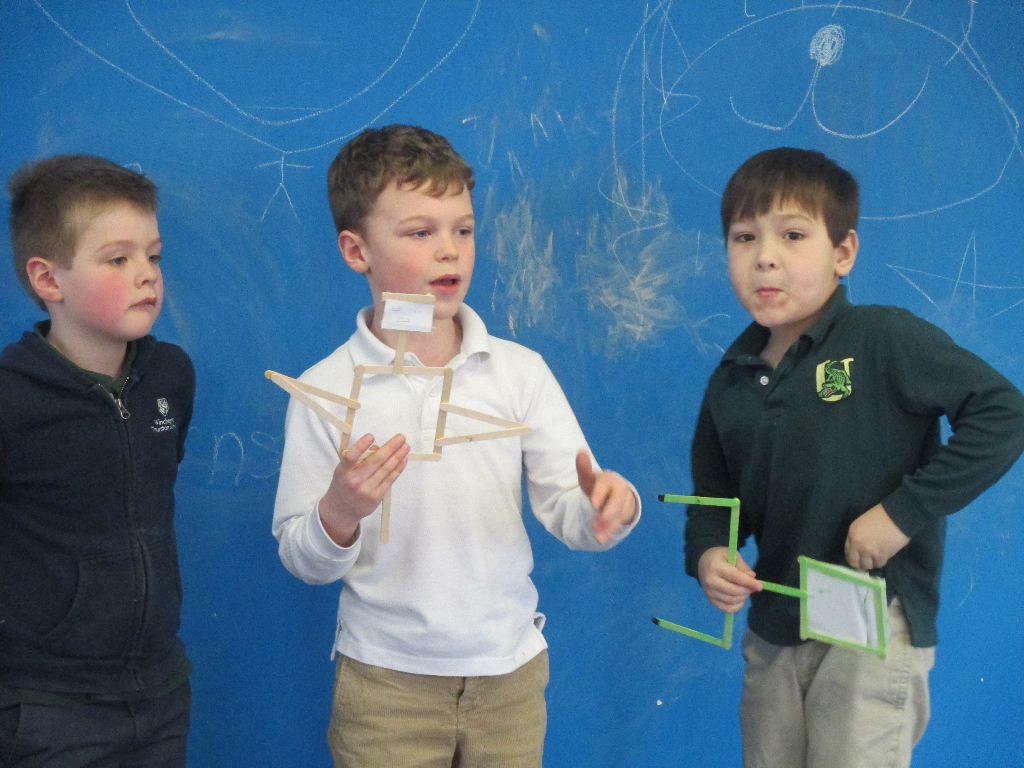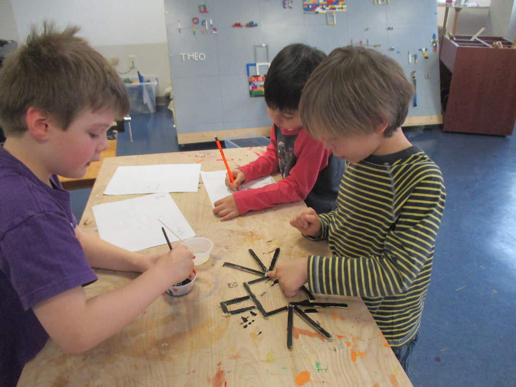 Posted by Jamie BartelsLike second grade, first grade has been working on Forward Design, as we call it in Inventor’s Club. In the forward design process students first sketch out their ideas, count and label the materials they will need and then submit their design for approval. Once they have received approval students can use a limited set of materials, in this case popsicle sticks and wood glue, to build their designs. Once they are satisfied with their designs, students decorate them with paint or marker.