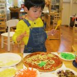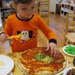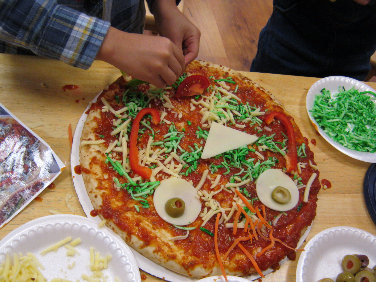 Posted by Janice ShannonOur class enjoyed making some spooky pizzas on Halloween! We used all kinds of wholesome foods to create the monsters’ faces and then happily ate their yummy eyes, noses and ears. It was lots of fun to make something scary and then gobble it all up!