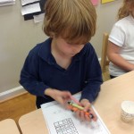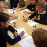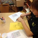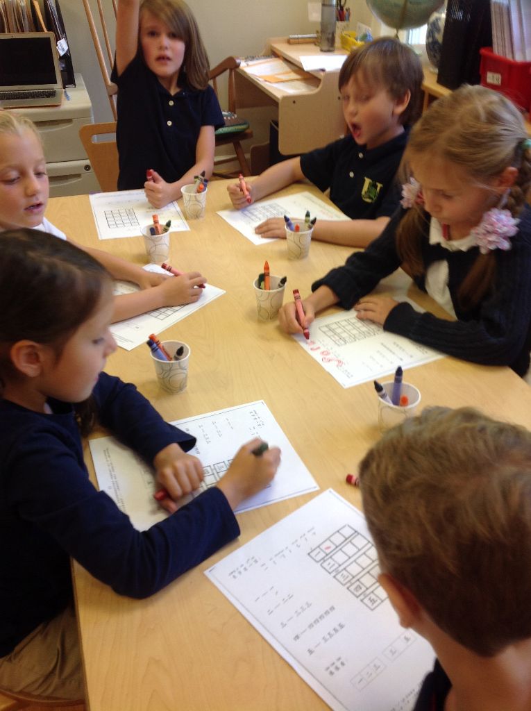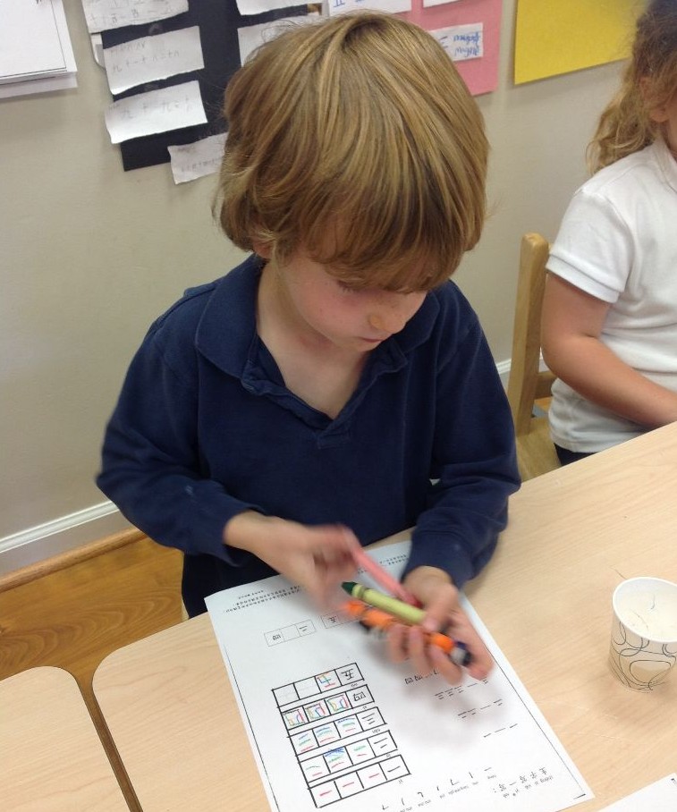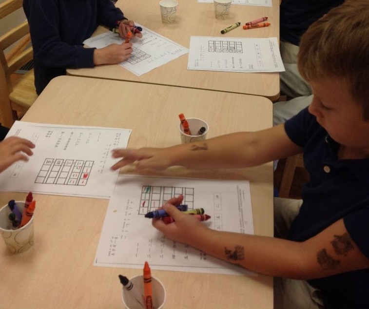 Posted by Teresa HsiaoIn first grade, our students will begin to develop literacy skills in Chinese systematically. One of the fundamental rules for writing Chinese is to be mindful of each character’s stroke order. Stroke order will increase the accuracy of the students’ written output and assist students’ ability to commit to memory new written vocabulary words. Our first graders have been practicing writing characters in correct stroke order by doing rainbow writing with crayons. They begin writing each character by using red for the first stroke, green for the second stroke, blue for third stroke, etc. Some first graders particularly enjoyed singing the color song while they practiced writing in Chinese. Our eager learners have been proud of their ability to produce colorful Chinese characters accurately!
