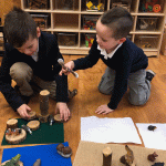 Posted by Mary CurranJanuary has been a very busy month in the Early Childhood Explorations Lab! PreK-4 students investigated narcissus and amaryllis bulbs with hand lenses and predicted the number of blooms that our amaryllis will have. They will continue to make weekly observations as our “winter garden” of bulbs grows. In addition, students learned that all animals make tracks. Using tracking plates and molds, they enjoyed making impressions of deer, raccoon, squirrel and even bobcat tracks in kinetic sand and playdoh. Students also created winter habitats for forest animals using loose parts like natural blocks, cotton balls, colored felt squares and stones.