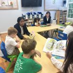 Posted by Faith Barbuto on November 22nd, 2016Dahlia’s mom, Heather, who is a literacy coach, came for a visit and taught us more about being Storybook Readers! First the class was read a familiar tale, The Three Billy Goats Gruff. Next we helped vocalize the words by really getting into character as the mean troll and big billy goat! Children really loved that part and there were even puppets to make the reading more fun and dramatic. Next, students broke up into small groups and reread the story themselves focusing on using the pictures and memory to retell the story.