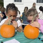 All of this hard work culminated in a wonderful autumnal event! The fifth grade and kindergarten classes, along with their families, came together around a campfire on the evening of October 27th right here on campus. The students got to share their creative and kooky stories, complete with illustrations by their kindergarten buddy, while sipping on cider and enjoying the beautiful fall night.