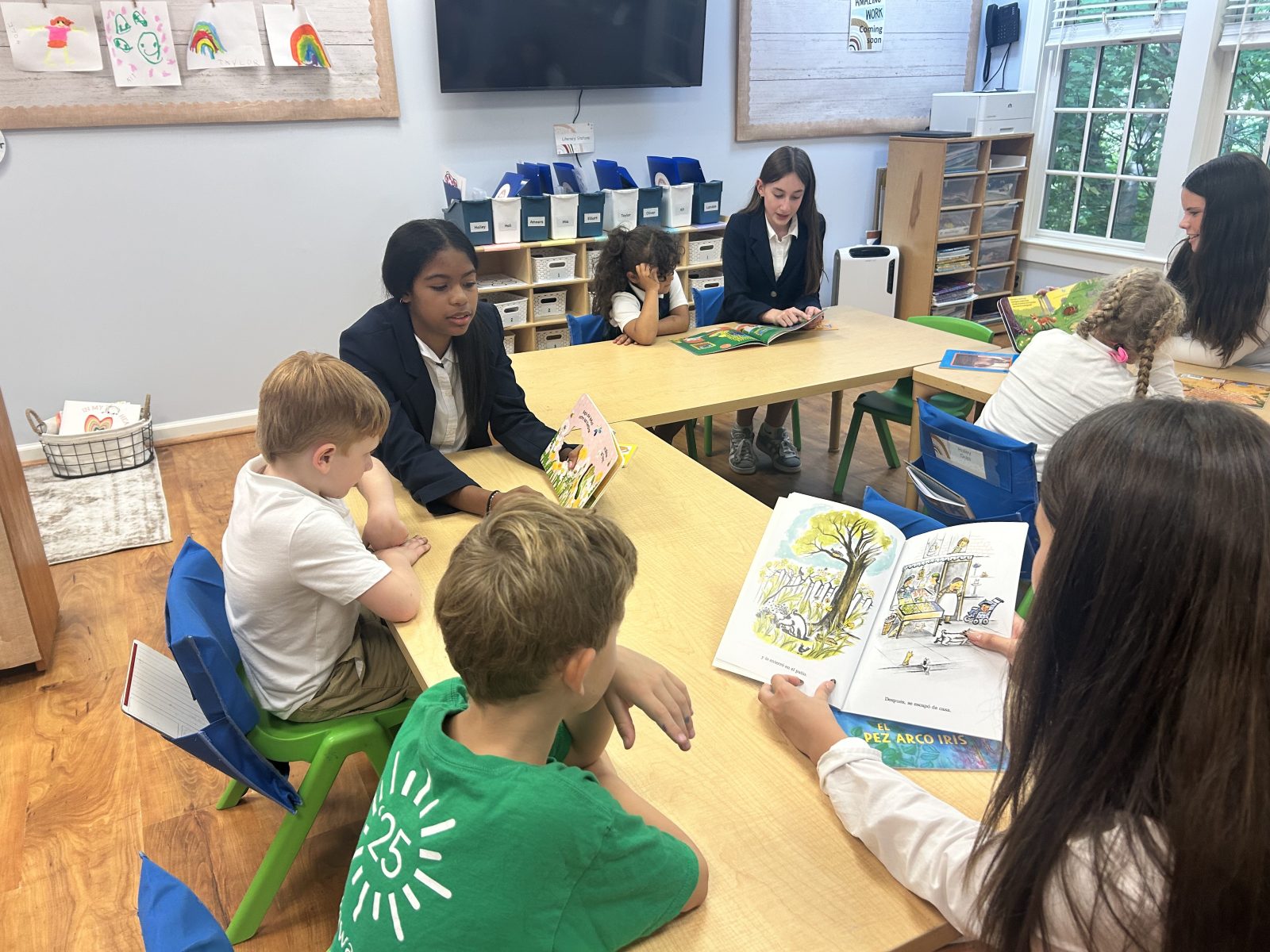 Posted by Thomas Iezin on October 15th, 2025This year, our 8th Grade Spanish class is back to sharing their learning with some of the youngest members of our community! Every other Wednesday, the 8th graders visit Early Childhood classrooms to read aloud to the Kindergarten—in Spanish.