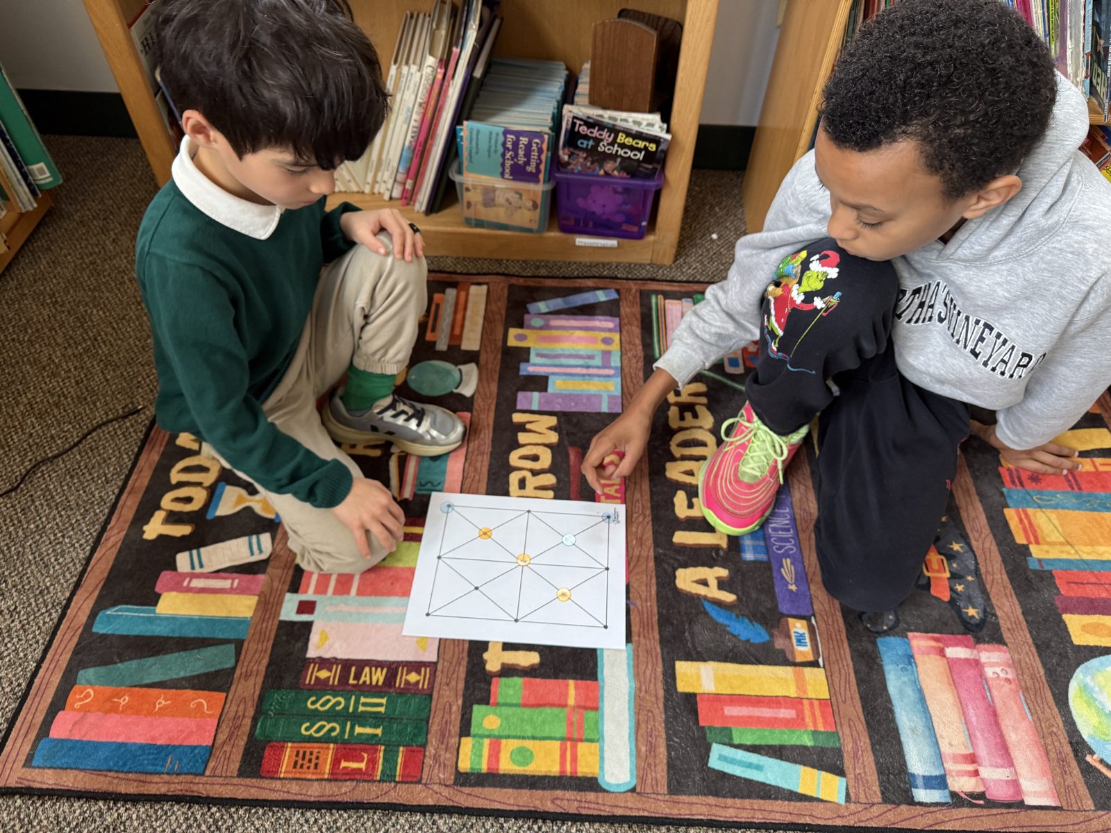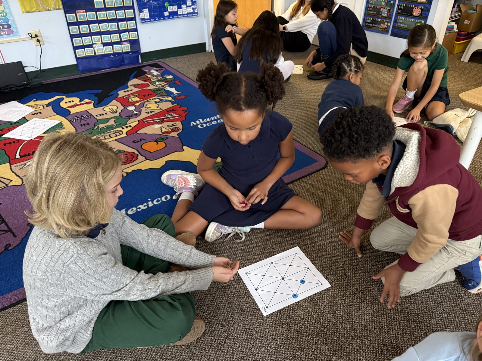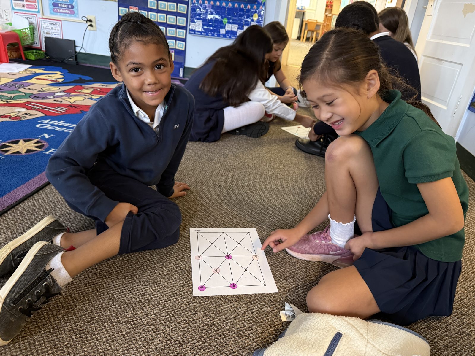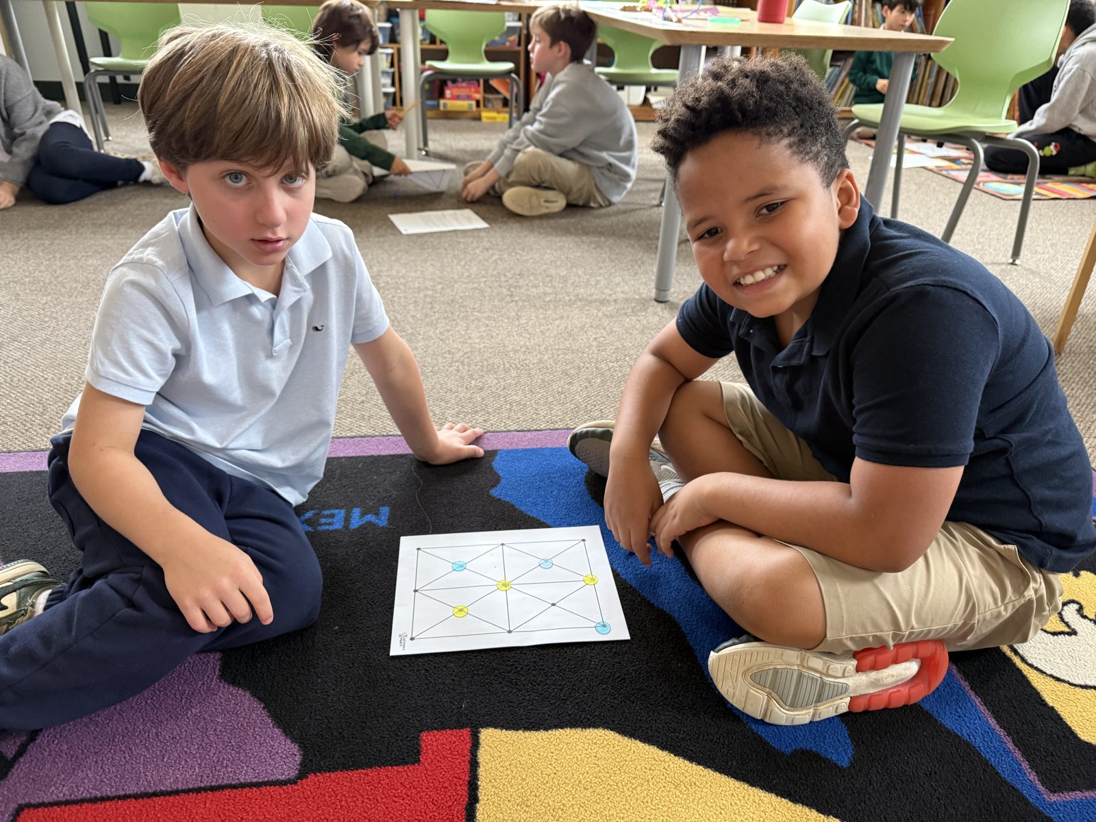 Posted by Karen EngelkeThis Indigenous Peoples Day, our 1st and 4th graders came together for a special celebration of culture and learning! They spent time connecting and playing a fun and strategic math game called Picaria. Picaria, a traditional Native American game, challenged students problem-solving skills and critical thinking as they learned to block opponents and plan their moves. It was wonderful to see the older students guiding their younger peers, fostering a spirit of teamwork and cultural appreciation. What a memorable way to honor Indigenous traditions and make math engaging for everyone!