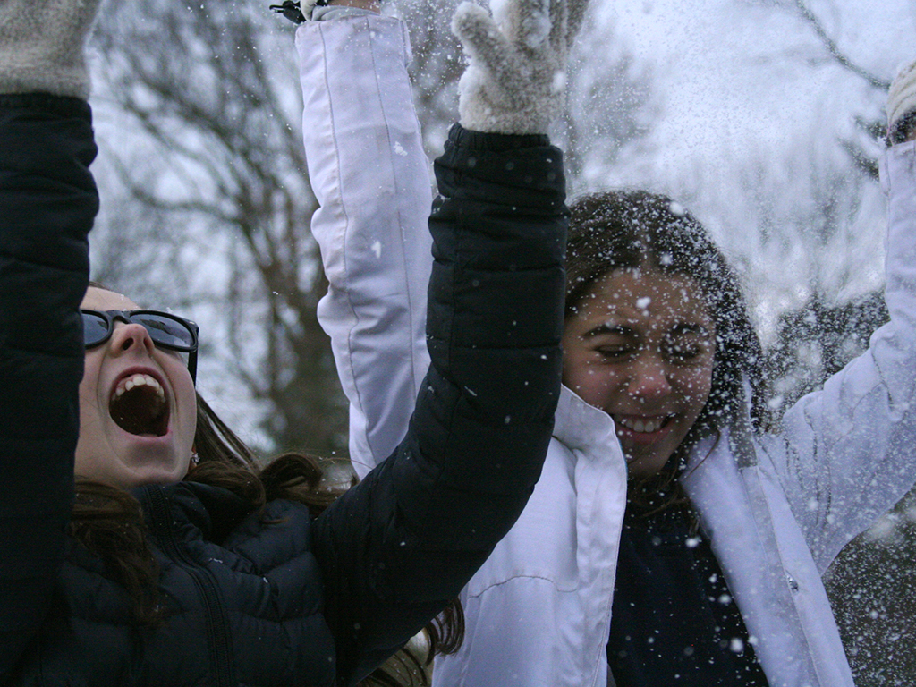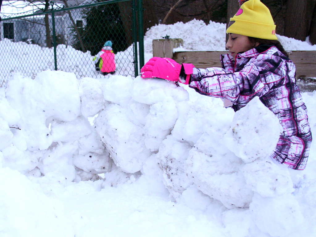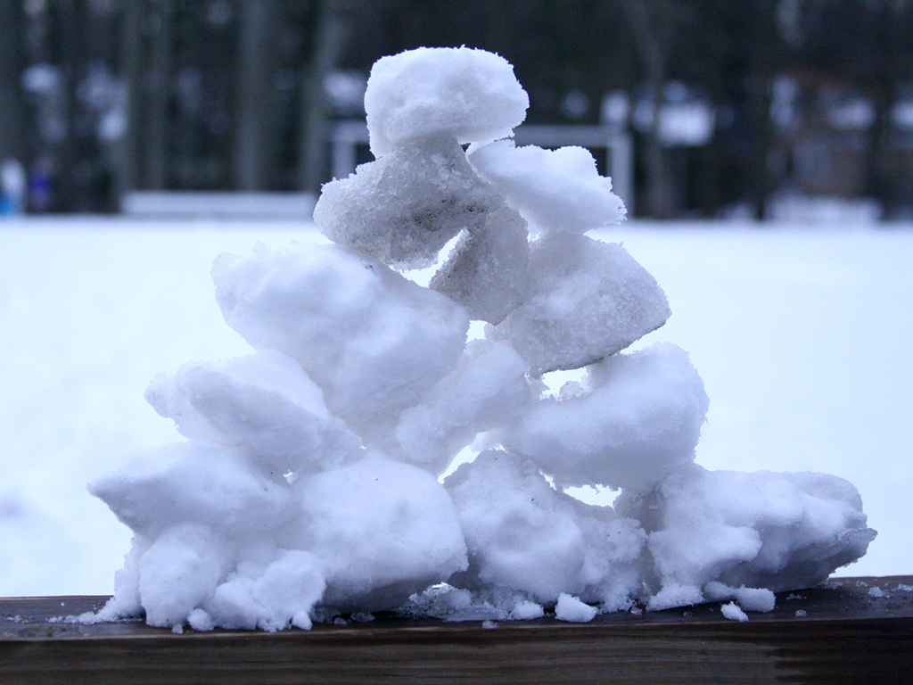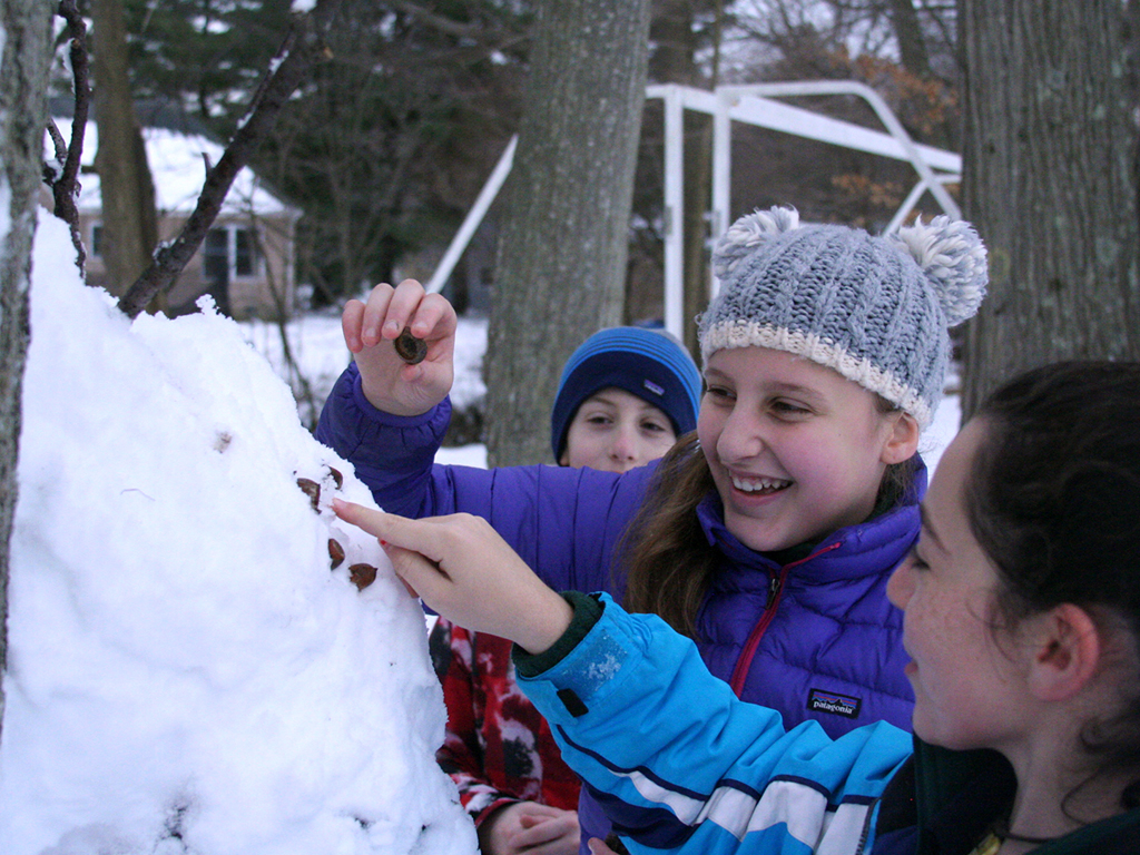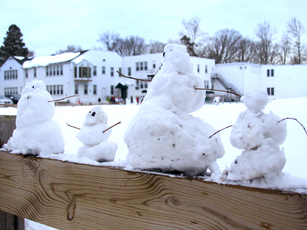 Posted by Krissy PondenOn a mild winter morning sixth graders took advantage of the gorgeous blanket of snow on the school’s grounds to create ephemeral sculptures inspired by the work of environmental artist, Andy Goldsworthy. This was a continuation of our project from the fall when we used leaves, stones and grass to design gorgeous natural installations. Perhaps more challenging, but almost certainly more fun, the students crafted snowballs, a few snowmen, and even noticed the beauty of the paths their boots were making as they crisscrossed the field. Who needs a snow day when you can have this much fun at school!?