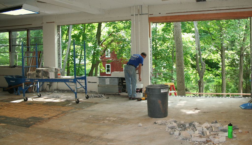 First the wall between the gym and dining room came down. Then one window. Then another. And another. And finally the last one!