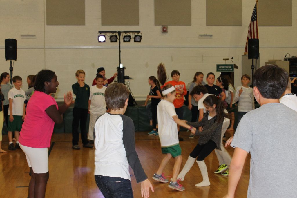 Posted by Mary FaulknerThe fourth and fifth grade enjoyed an afternoon of snacks, chat and dance, at the Lower School Fall Social! Students began the event in the dining room enjoying healthy and even a few sweet treats, provided by parents. They then took to the gym for an hour of fun and Hip Hop dance instruction by none other than Austin ‘Red Supreme’ Dailey. The students are already looking forward to their Spring Social! Thanks to all who organized this awesome event!