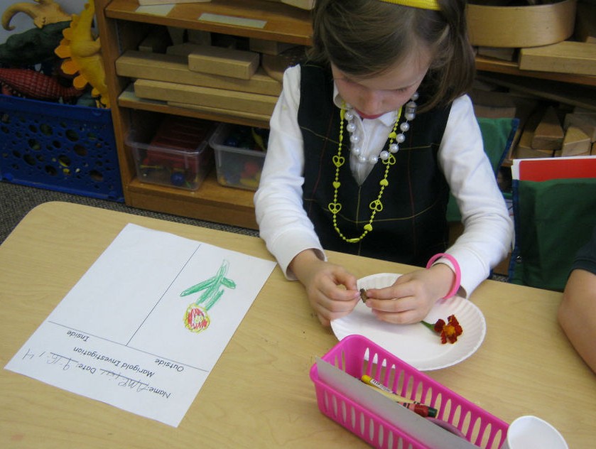 Posted by Mary CurranIn September kindergartners picked marigolds in the Unquowa garden. They learned that flowers are not only beautiful but play an important role in attracting pollinators. Students carefully examined marigold flowers and their seed pods and recorded observations. The pods were opened and seeds collected for a special project in the spring. In addition, an envelope of seeds was given as a gift to Vasudha Wanchoo, who is the director of a residential home and school for children in the Himilayas. Kindergartners from The Jhantse Gatsal Children’s Garden will be planting marigold seeds from the Unquowa garden in their gardens in the spring.