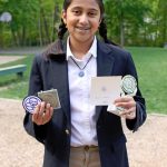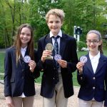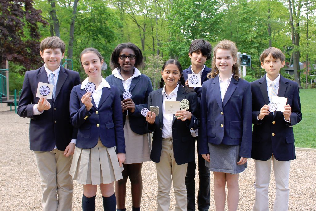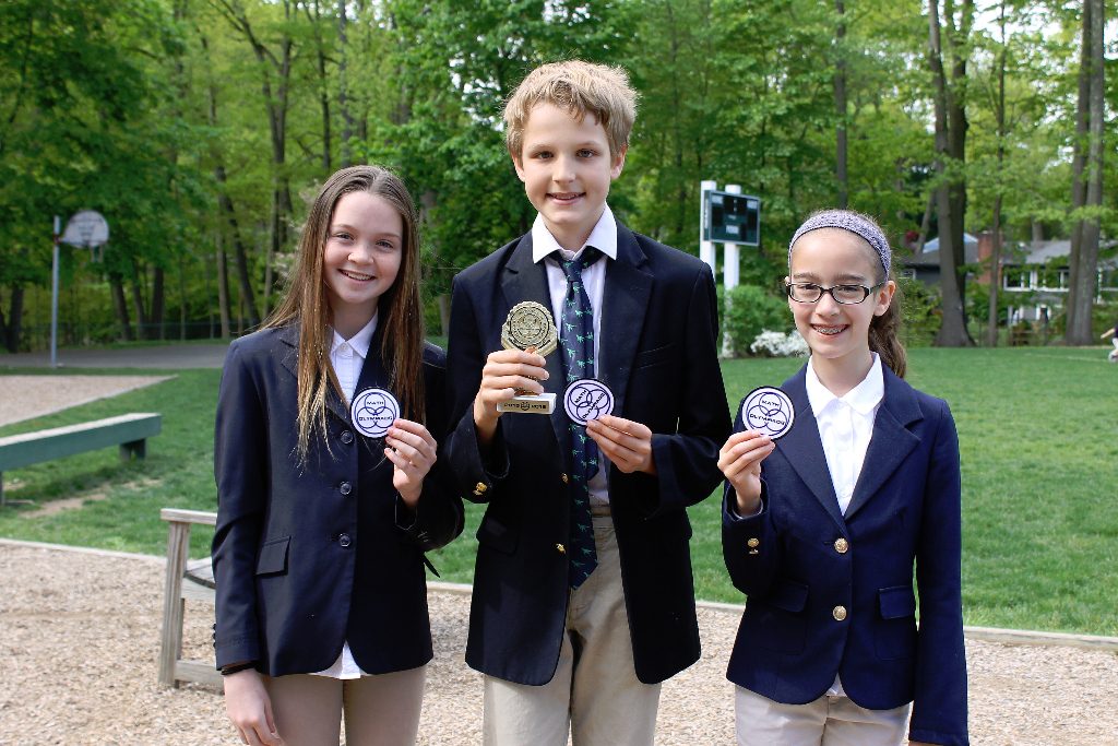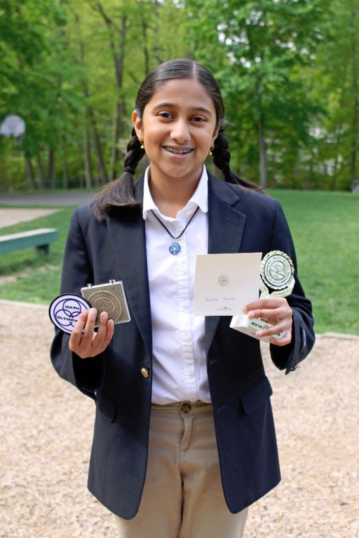 In the sixth grade, Alex, Daniel and Lauren L. earned silver pins for their scores in the top 10%. Antara and Sneha received gold pins for their scores in the top 2%. Sneha received the trophy for achieving the highest score in sixth grade, but that’s not all. For her perfect score of 25 she received the George Lenchner medallion. George Lenchner was the founder of Math Olympiads for Elementary Schools. This is the first time an Unquowa student has achieved this accomplishment.