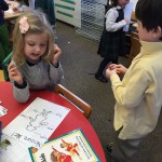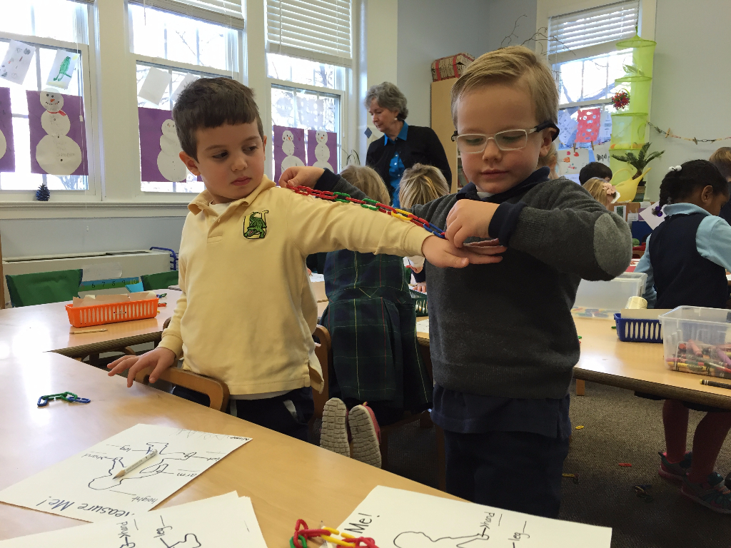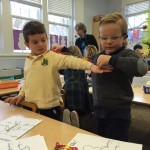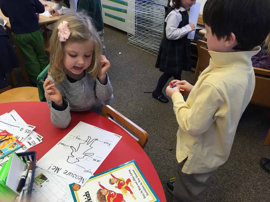 Posted by Faith BarbutoIt was smiles for miles as the kindergarteners got to teach their new measuring skills to the PreK-4 students! First, each kindergartener measured different body parts on their buddy. Next, they assisted their buddy in recording this data. Then the tables were turned and the PreK-4 children tried their hand at measuring. I can’t wait for next year when they will explore all types of measurement!