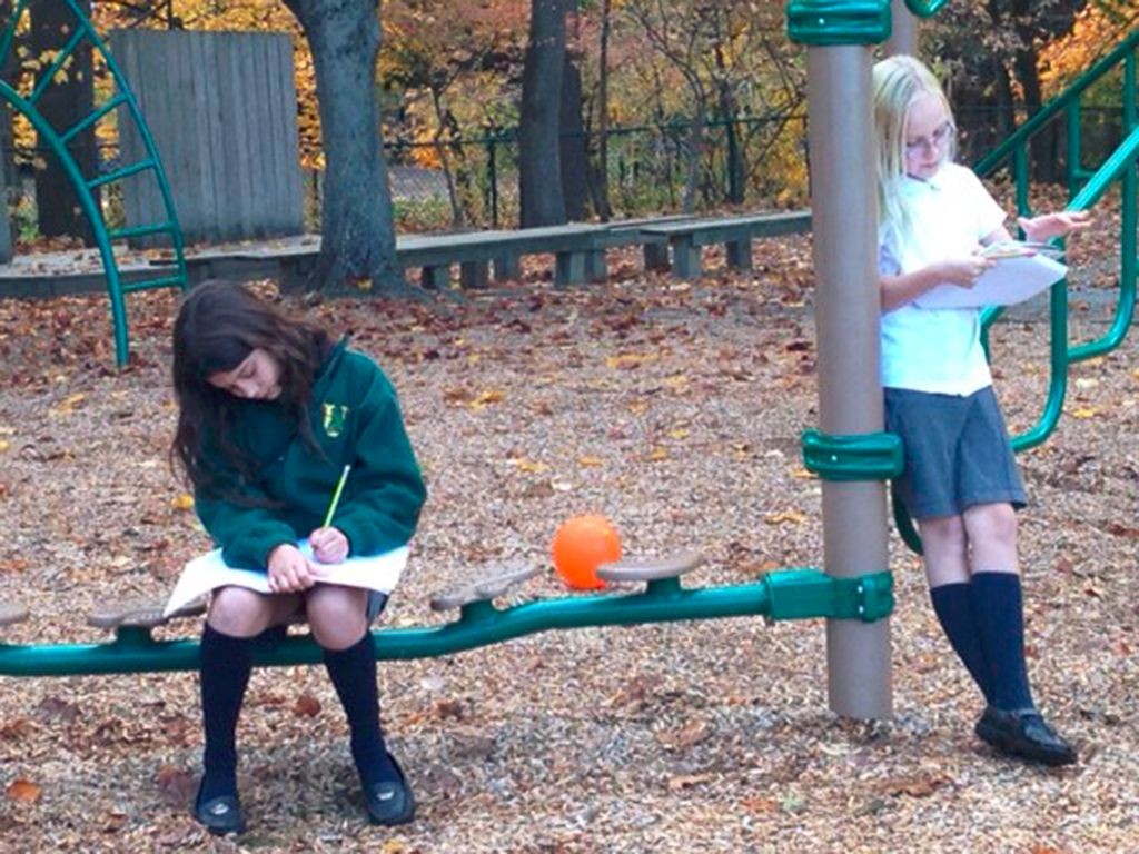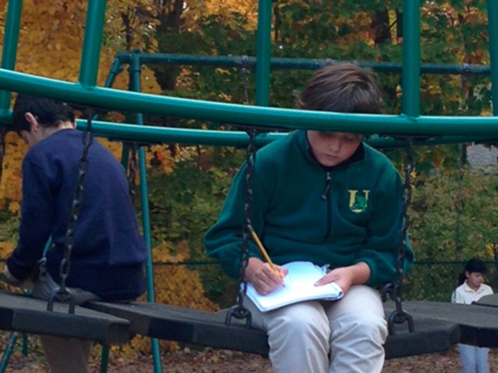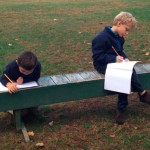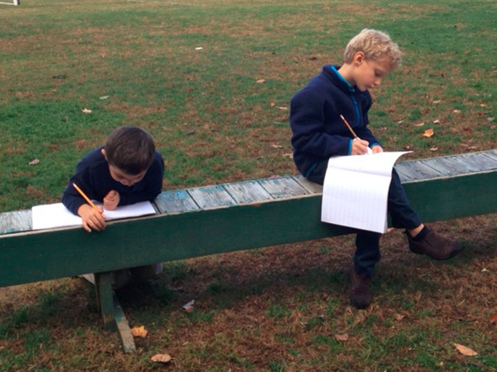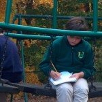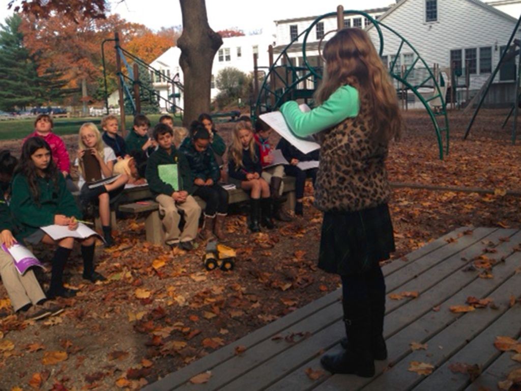 Posted by Carlene GordonAfter the exciting Halloween weekend, we decided to start November with a Mindful Monday. Third and fourth graders began first thing Monday morning with a silent walk around our playground and field. Upon completion of the walk students found an outdoor seat and closed their eyes as I encouraged the children to listen to the sounds and nature and focus on their thoughts about October and wishes for November. Students were then given a few minutes to journal and illustrate their thoughts and feelings. Our third and fourth graders then volunteered (if they wished) to share their writings with the group. Students described feeling calm, peaceful and grateful. One student described the fall scenery as more vibrant than any crayola crayon could create. Well done, third and fourth graders!